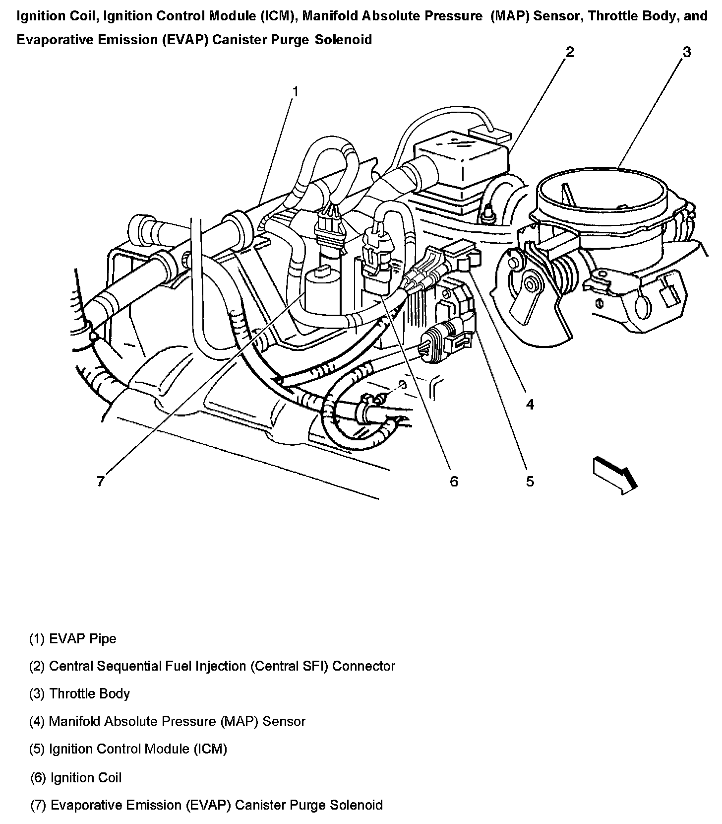 Ignition Coil, Ignition Control Module (ICM), Manifold Absolute Pressure (MAP) Sensor, Throttle Body, And EVAP Canister Purge Solenoid: