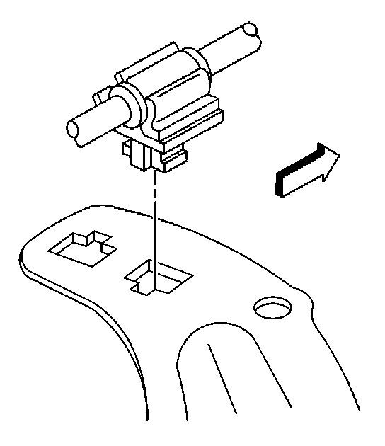 2. Install the accelerator cable panel insulator retainer (2) on the accelerator cable (1).