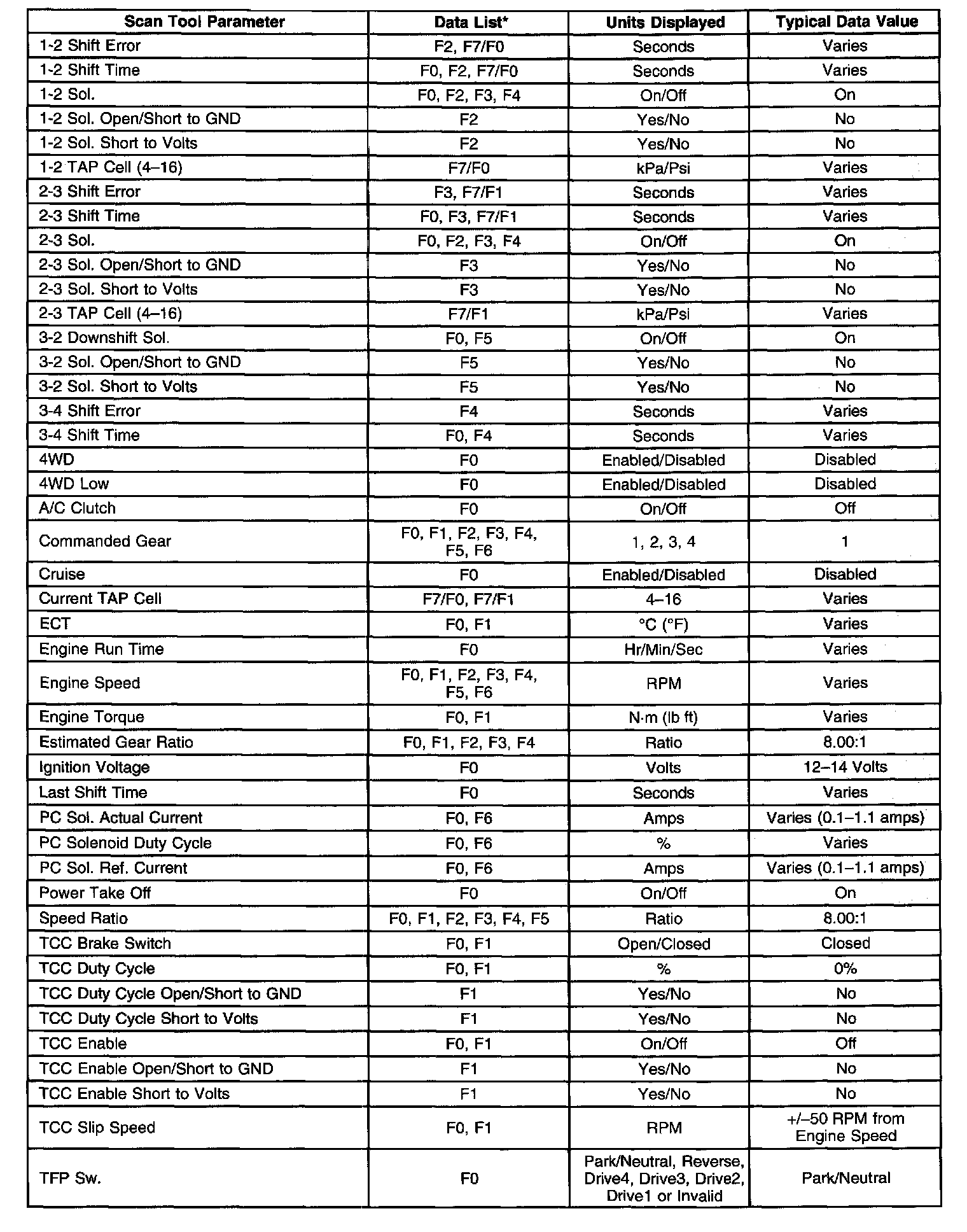 Transmission Scan Tool Data ListPart 1 Of 2: