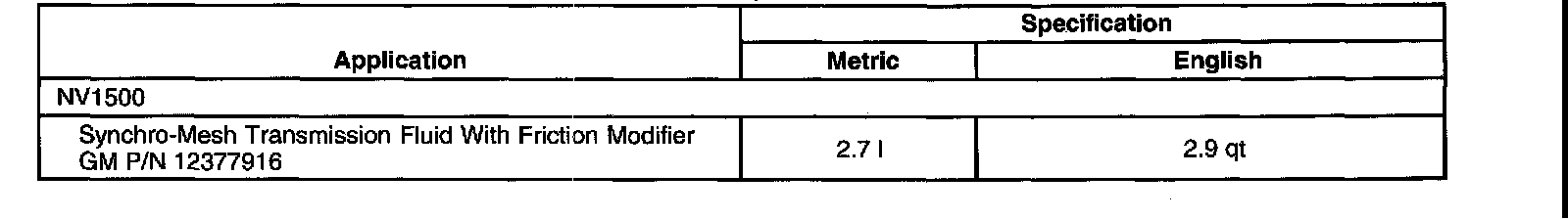 Lubrication Specifications: