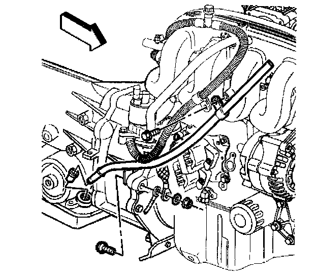 3. Install the bolt securing the filler tube to the transmission torque converter housing.