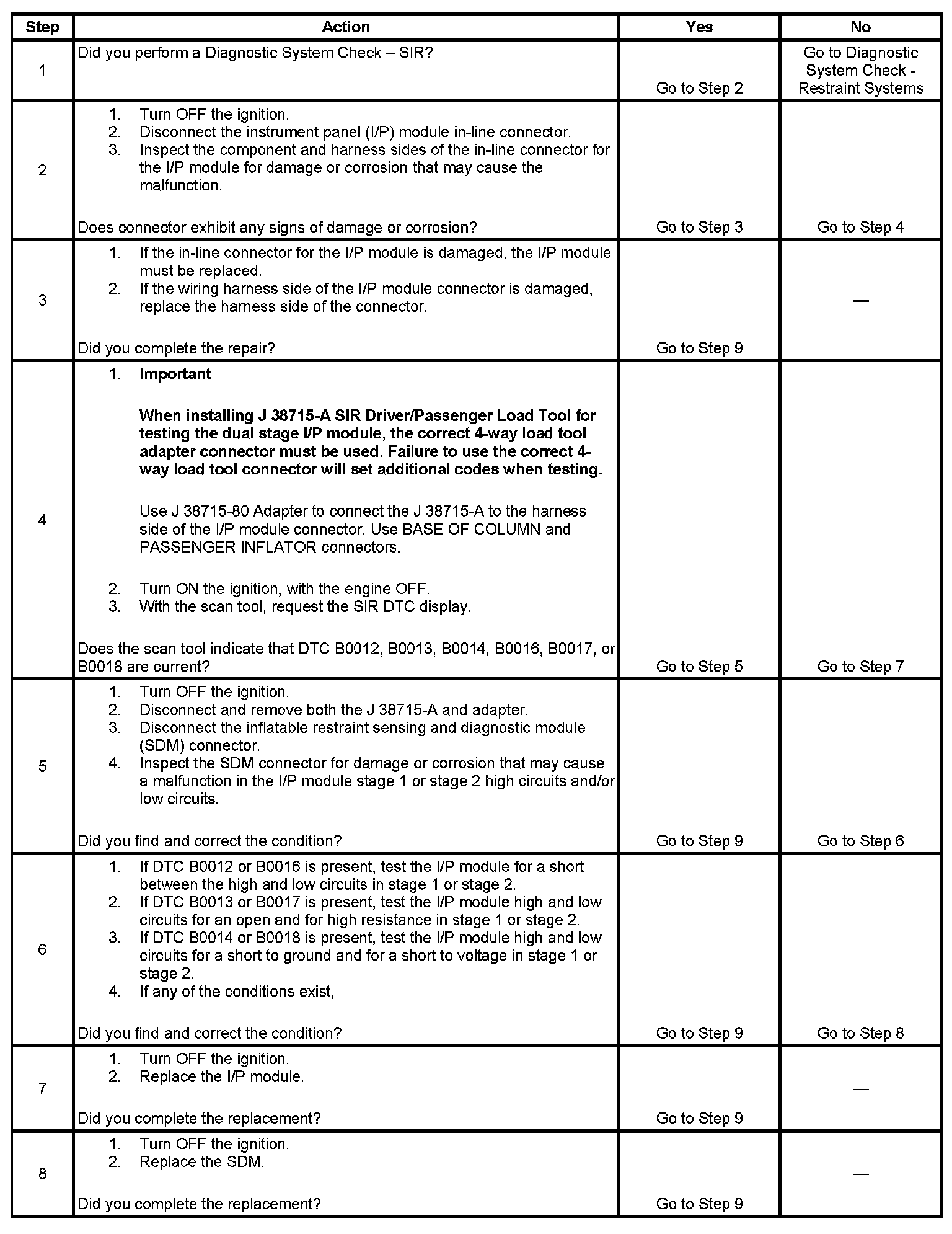 - DTC B0012 (stage 2) or B0016 (stage 1) will set when the I/P module deployment loop resistance is less than 1.3 ohms for 500 milliseconds.