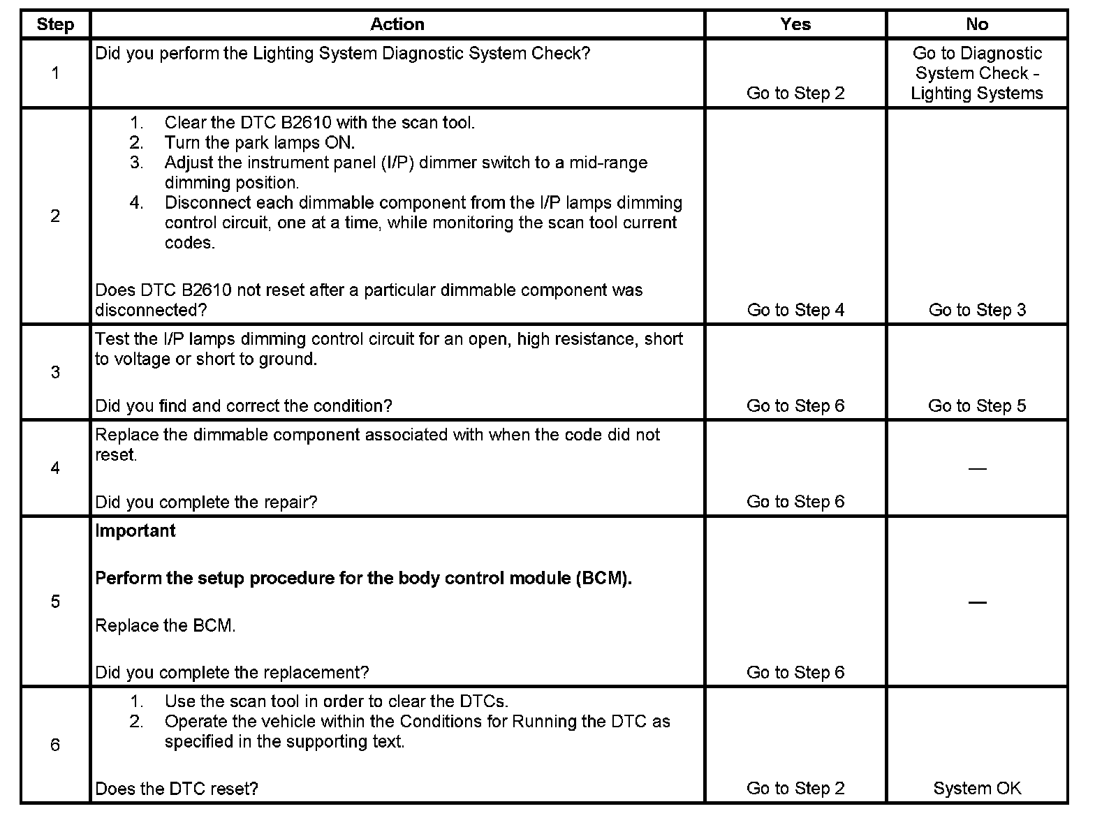 2. This step test determines by process of elimination which, if any, dimmable component is causing the DTC to set.