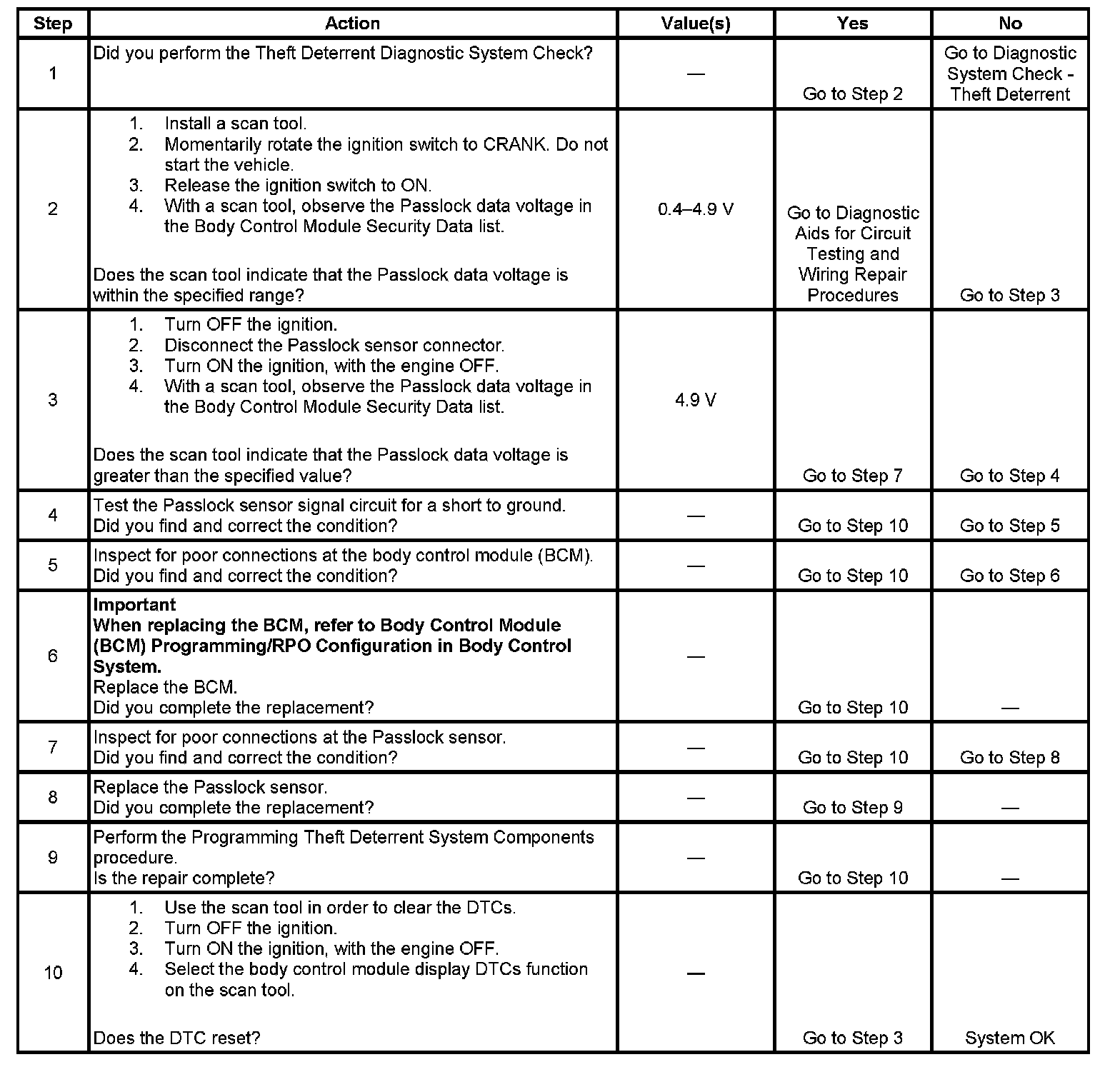 4. Tests for a short to ground in the Passlock sensor signal circuit.