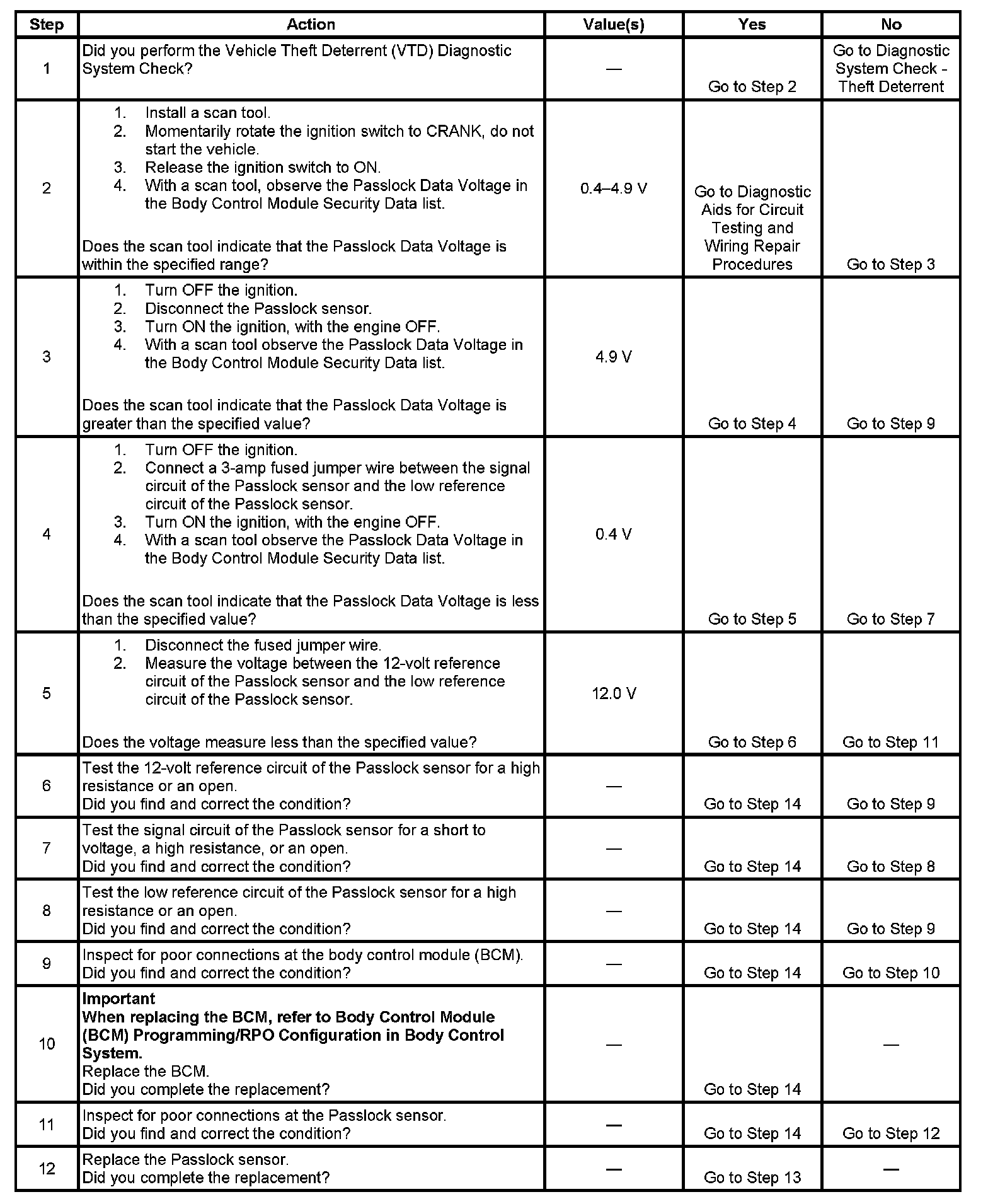 - You may be directed to this table from the Vehicle Theft Deterrent (VTD) Diagnostic System Check without a DTC B2958 being set. If you were directed to this table, follow all of the steps in this diagnostic table.