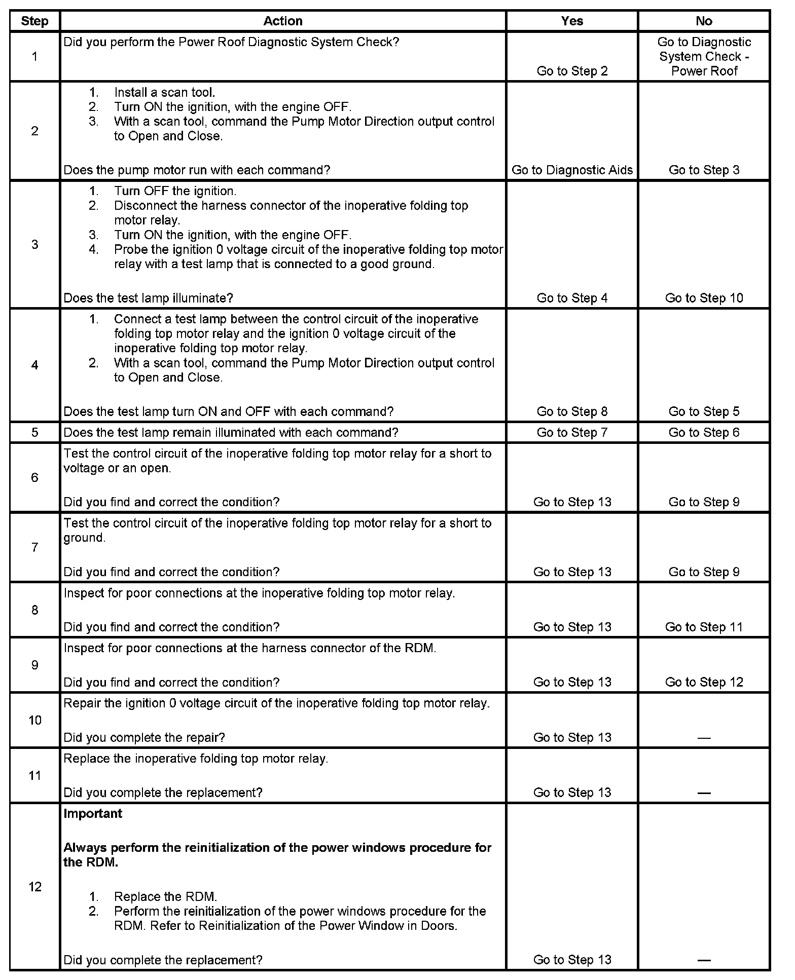 - If the RDM detects an open in the IGN 0 supply voltage circuit to the folding top motor relay when requested.