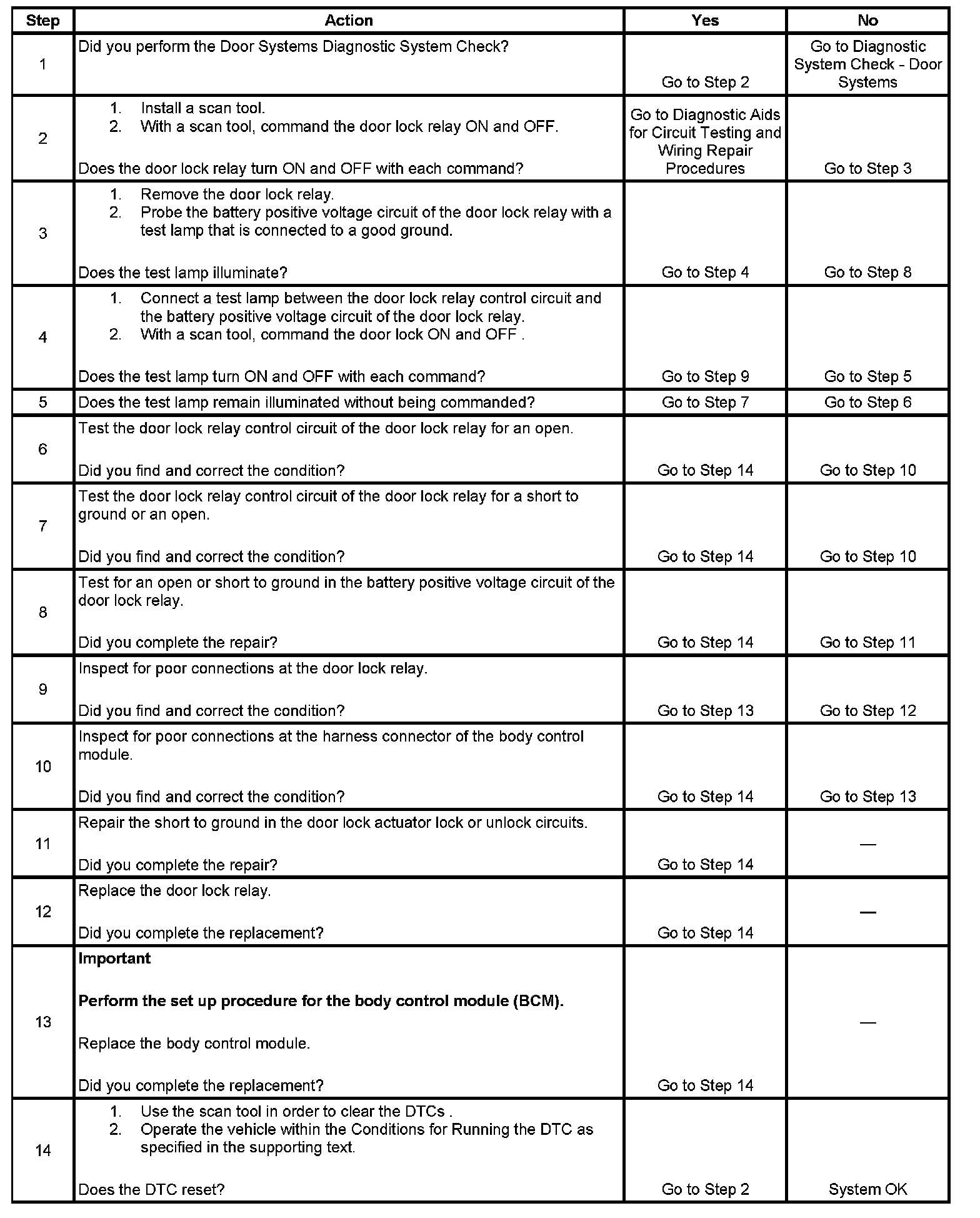 - DTC B3808 could also set if the door lock relay winding is open.