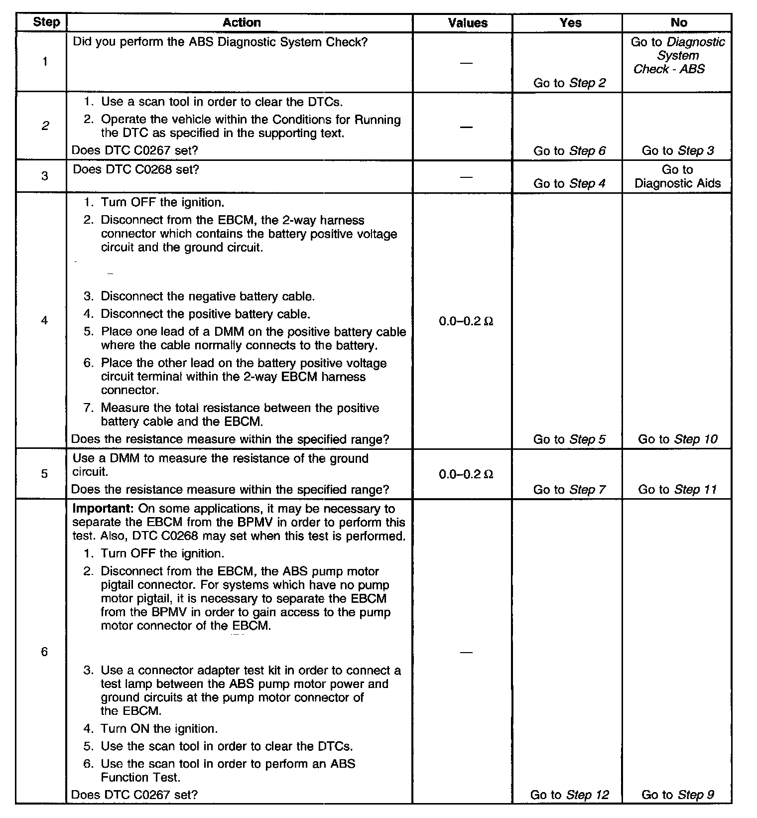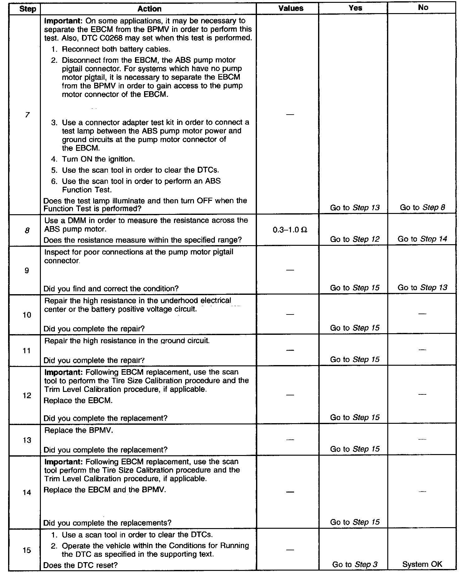 7. This step tests if the EBCM is capable of activating the ABS pump motor.