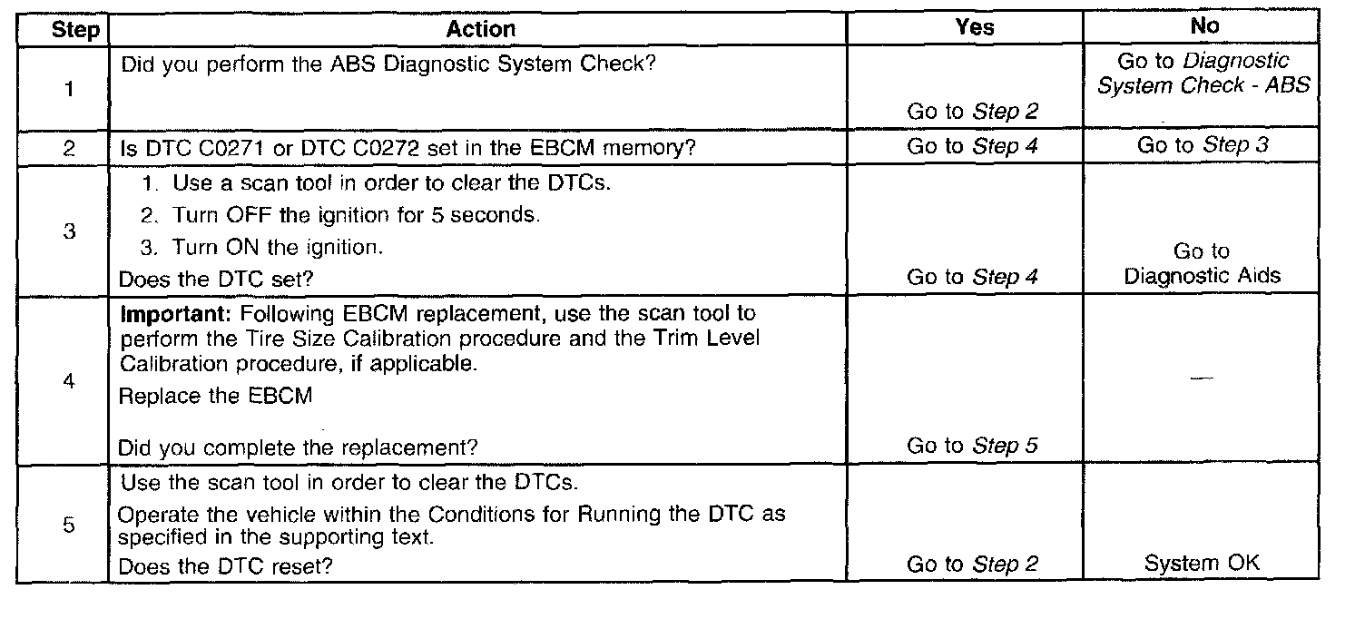 DTC C0271 - C0273, C0284