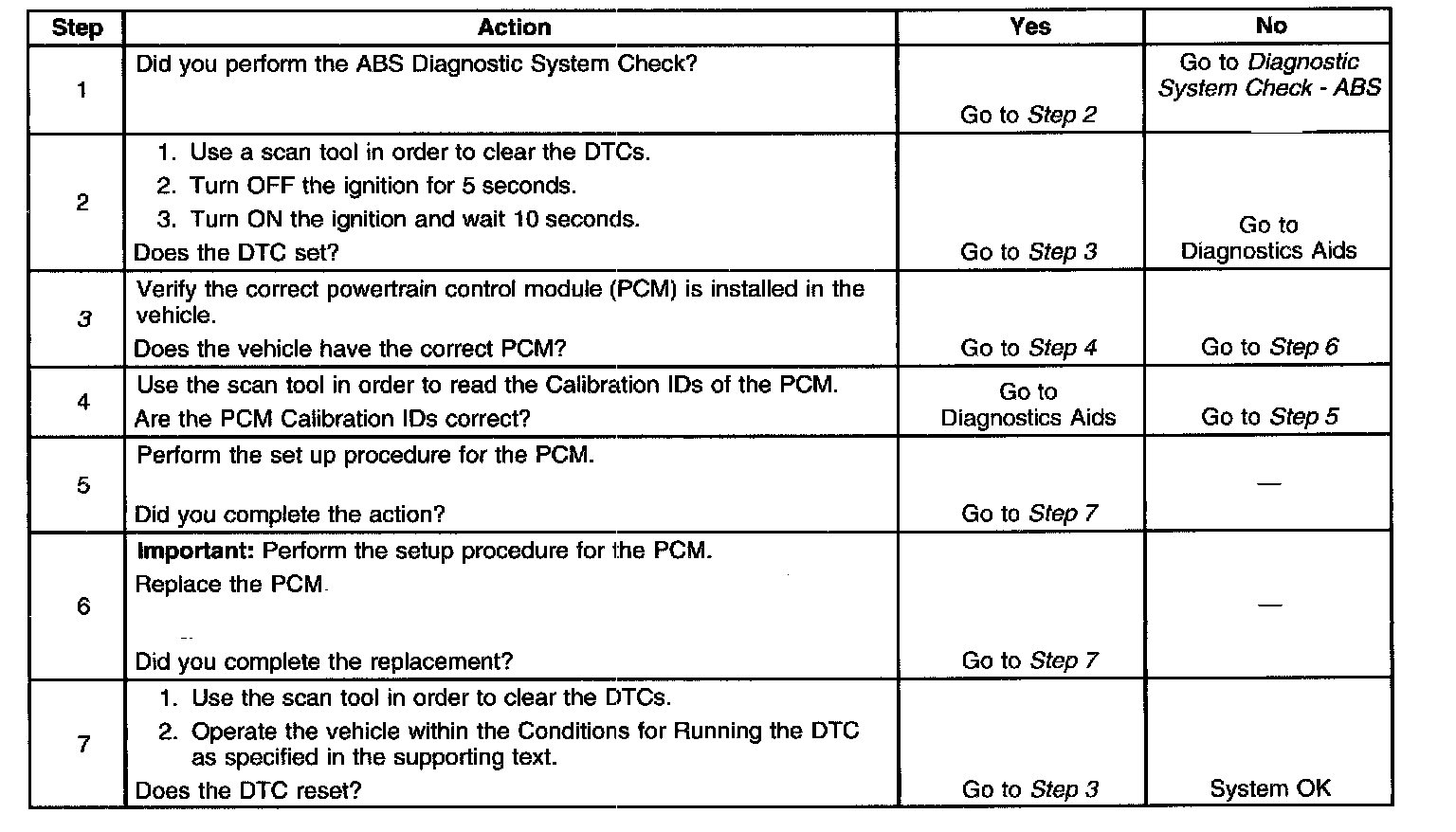 ^ If multiple TCS related DTCs are set, or the vehicle being serviced is not equipped with TCS, verify the correct EBCM is installed in the vehicle.