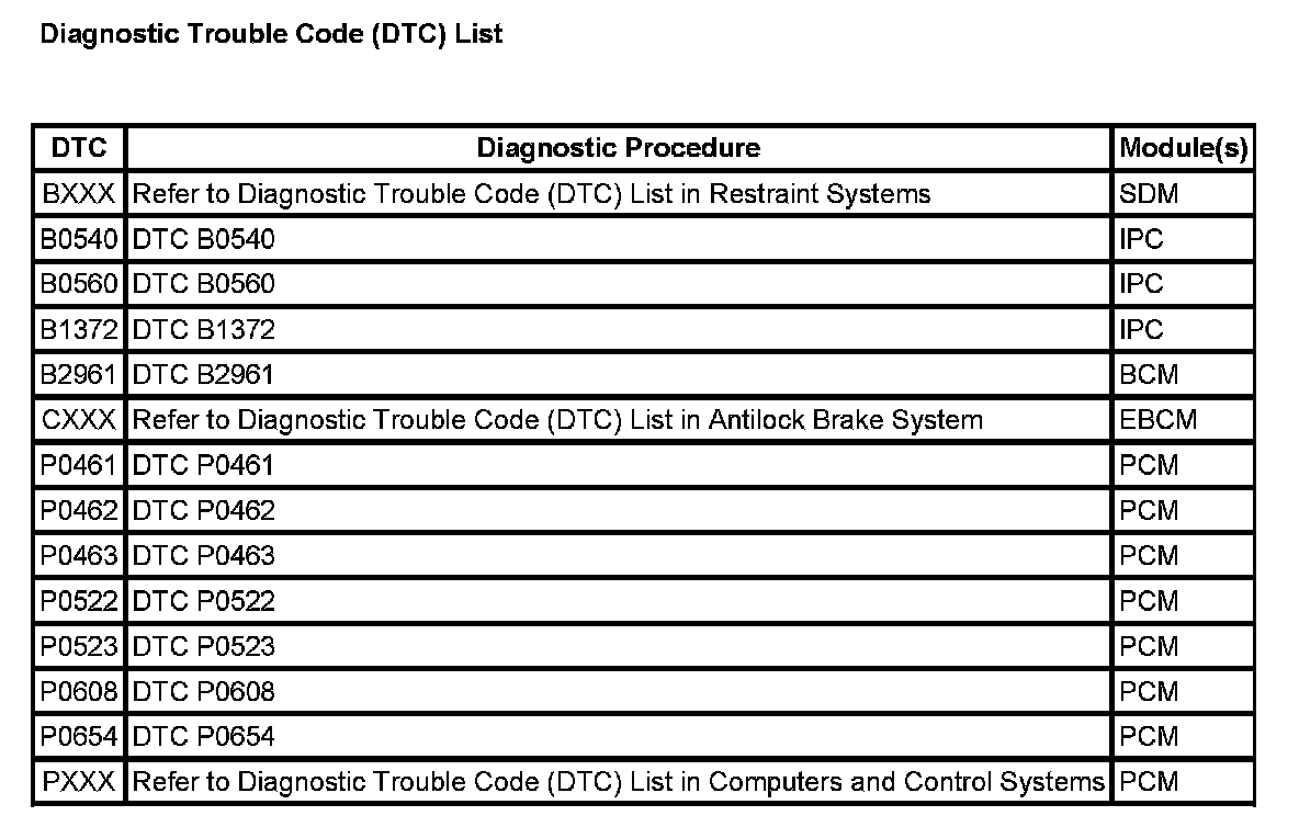 A L L Diagnostic Trouble Codes ( DTC )