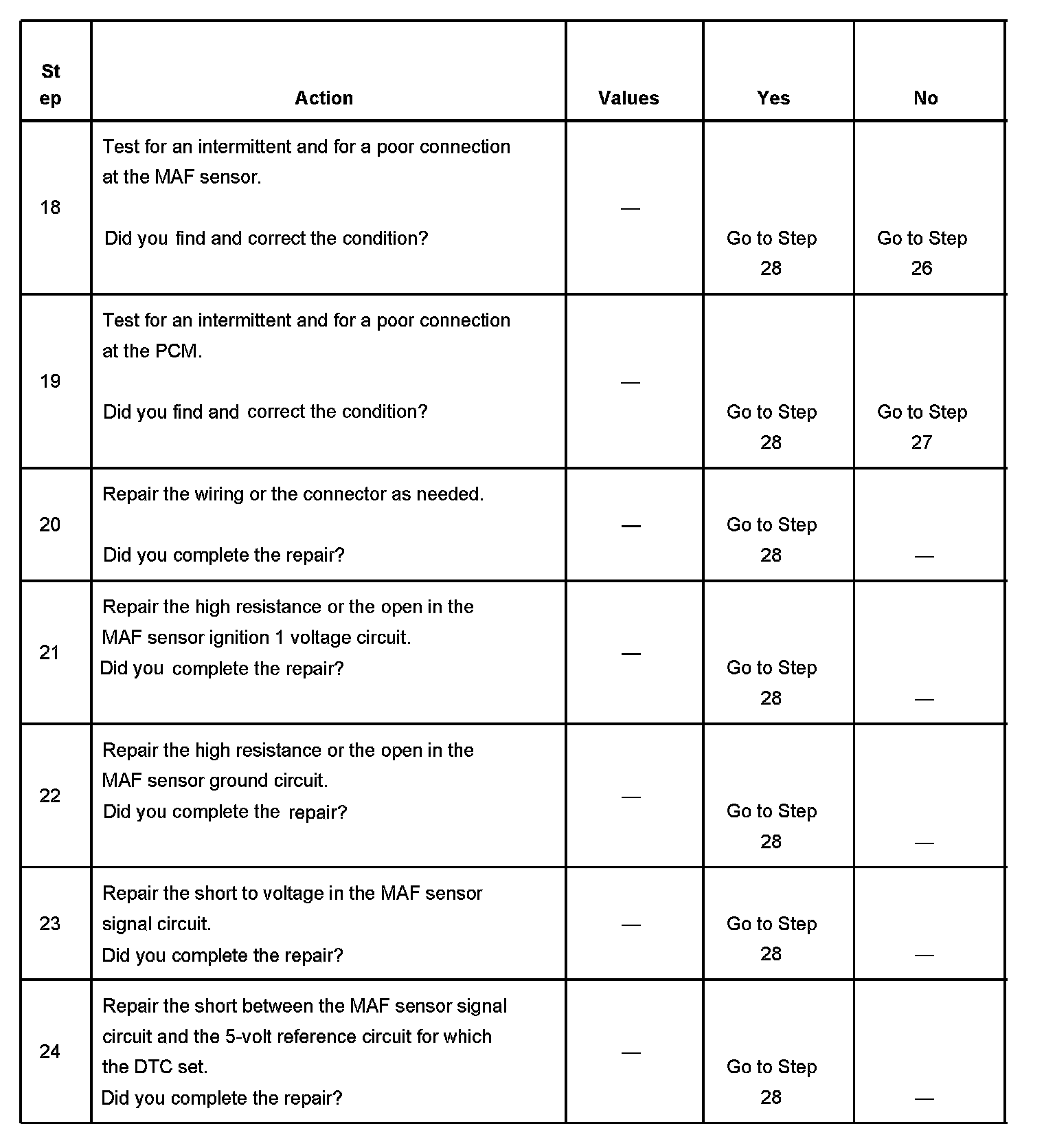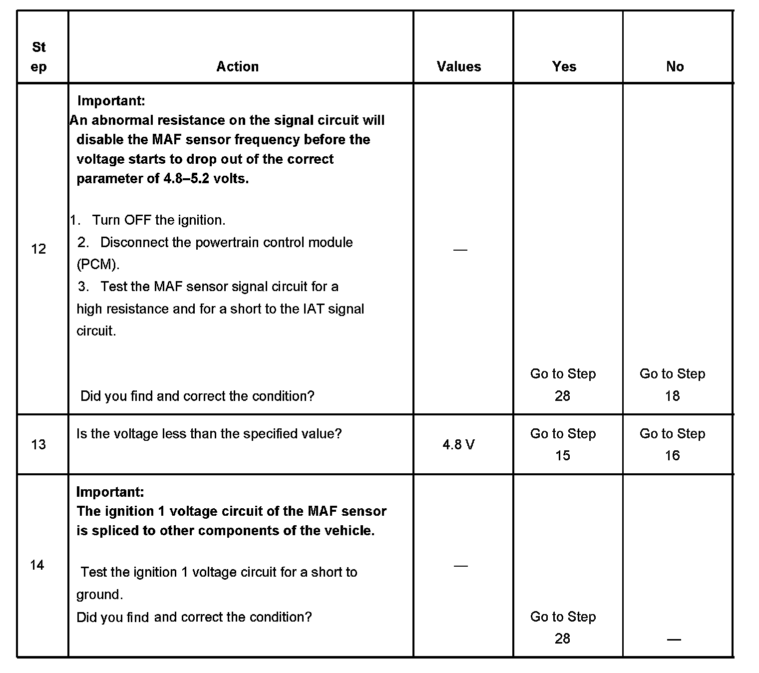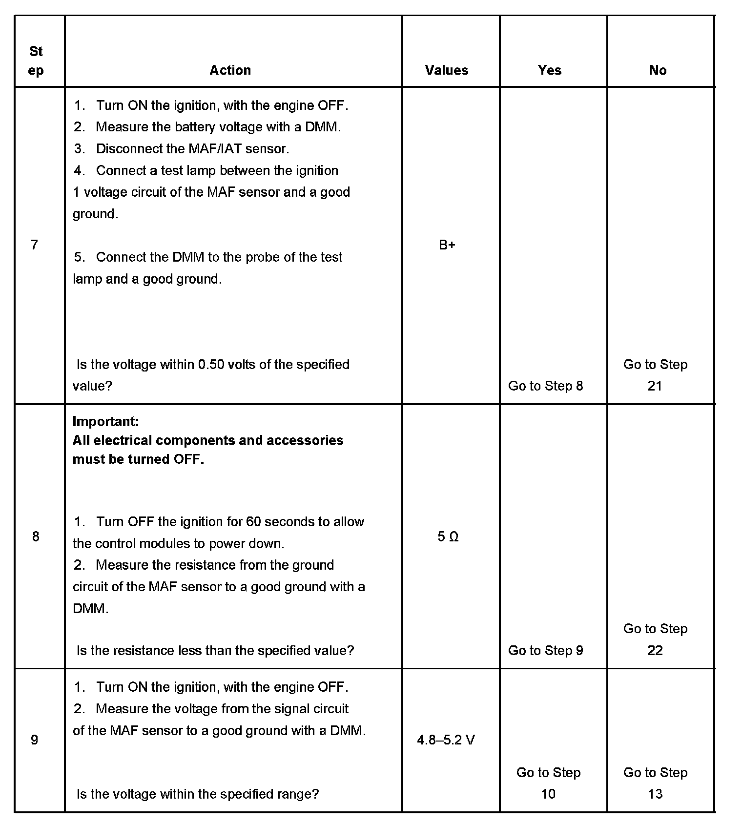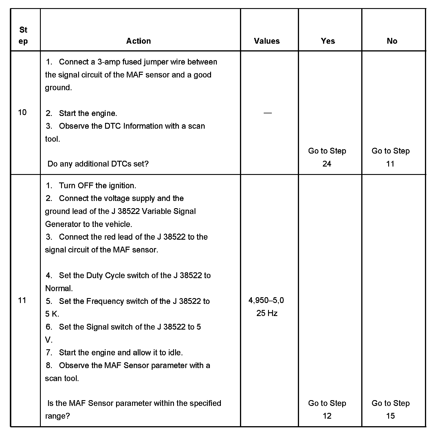 10. This step tests the signal circuit of the MAF sensor for a short to another 5-volt reference circuit.