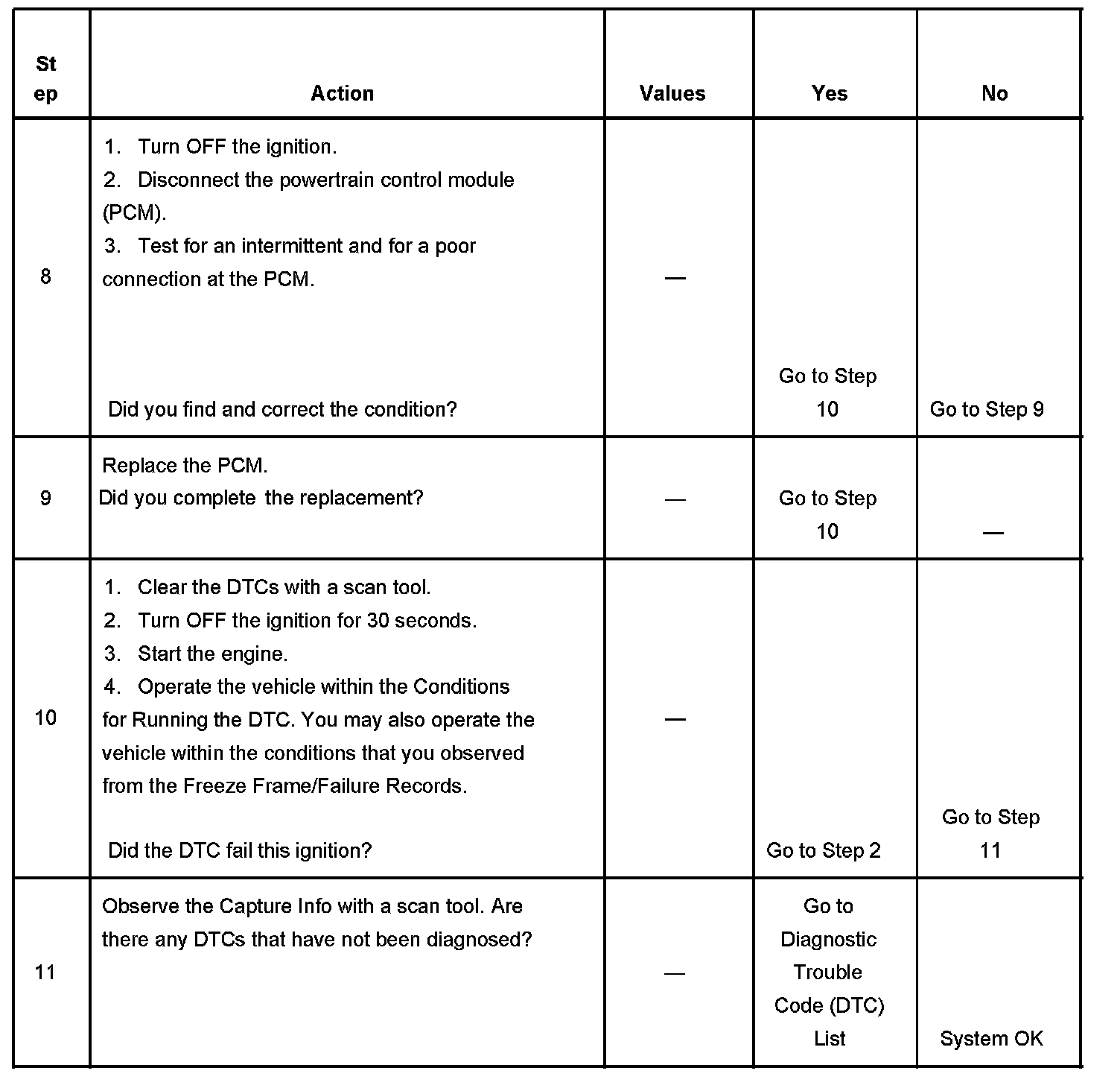 - A current DTC, Last Test Failed, clears when the diagnostic runs and passes.