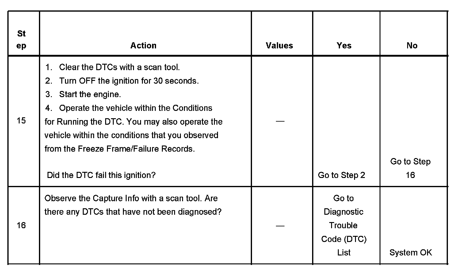 - A current DTC, Last Test Failed, clears when the diagnostic runs and passes.