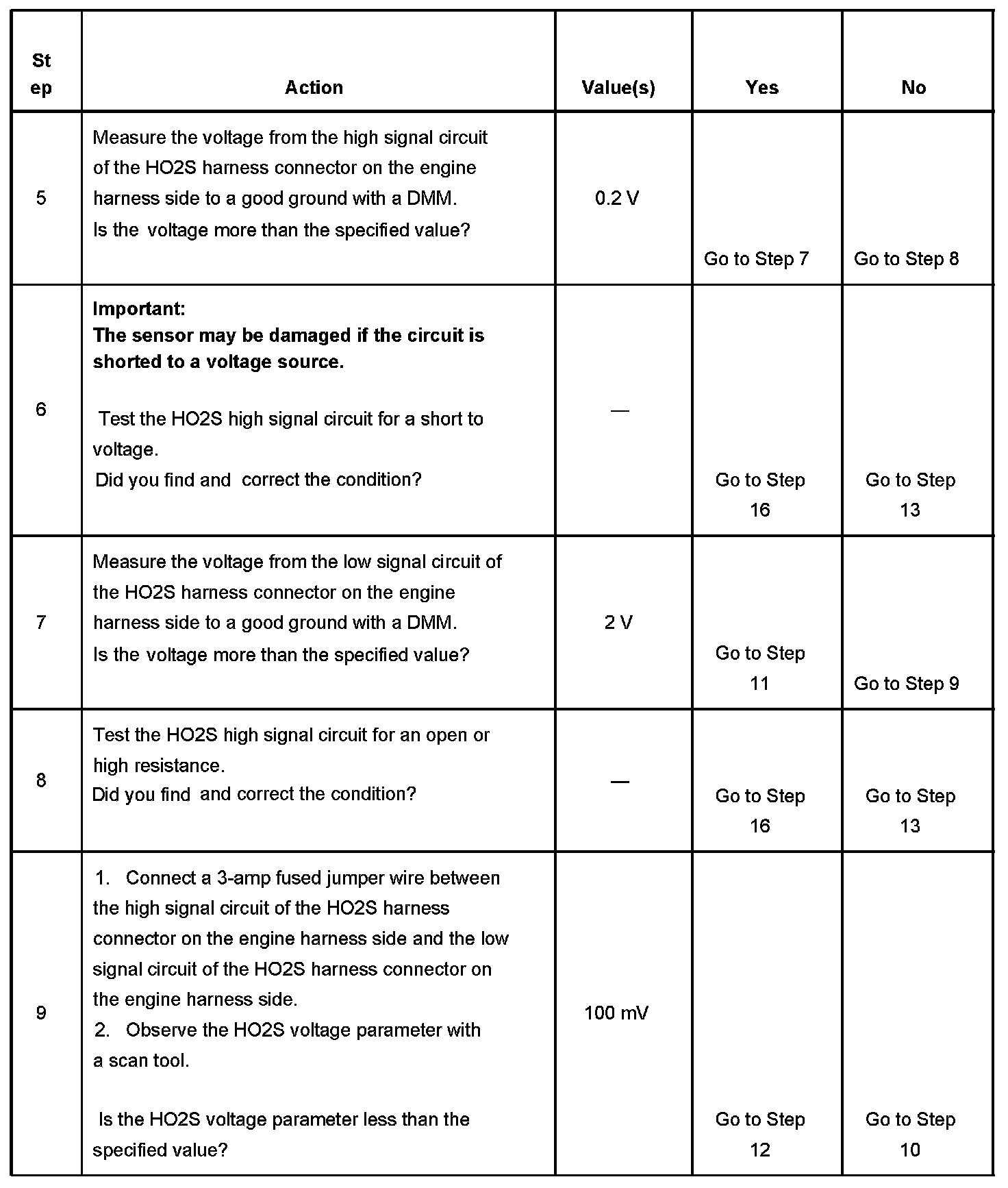 The numbers below refer to the step numbers on the diagnostic table.