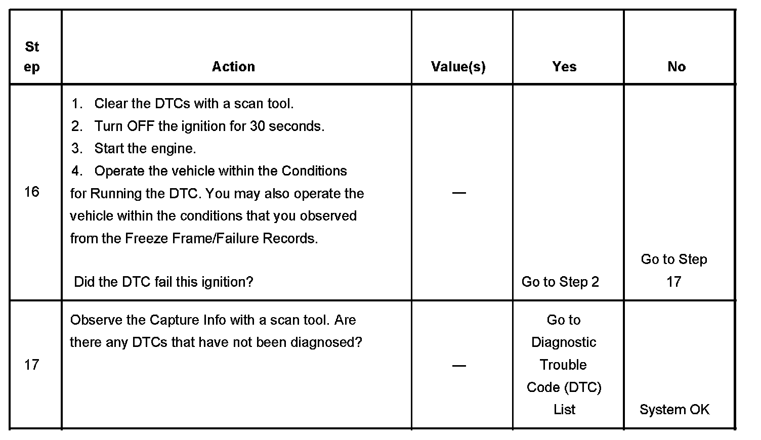 - A current DTC, Last Test Failed, clears when the diagnostic runs and passes.