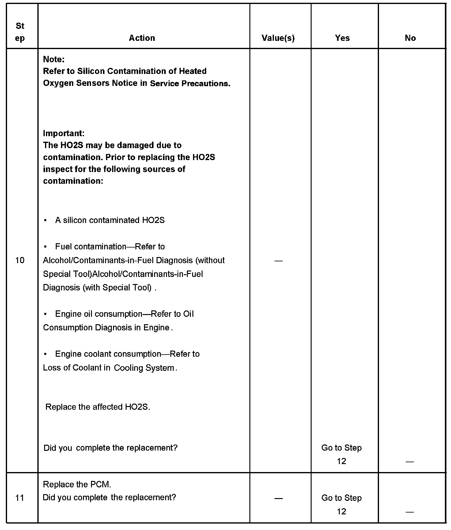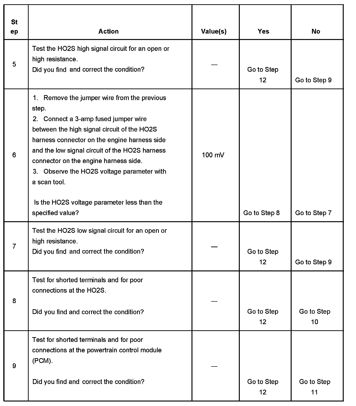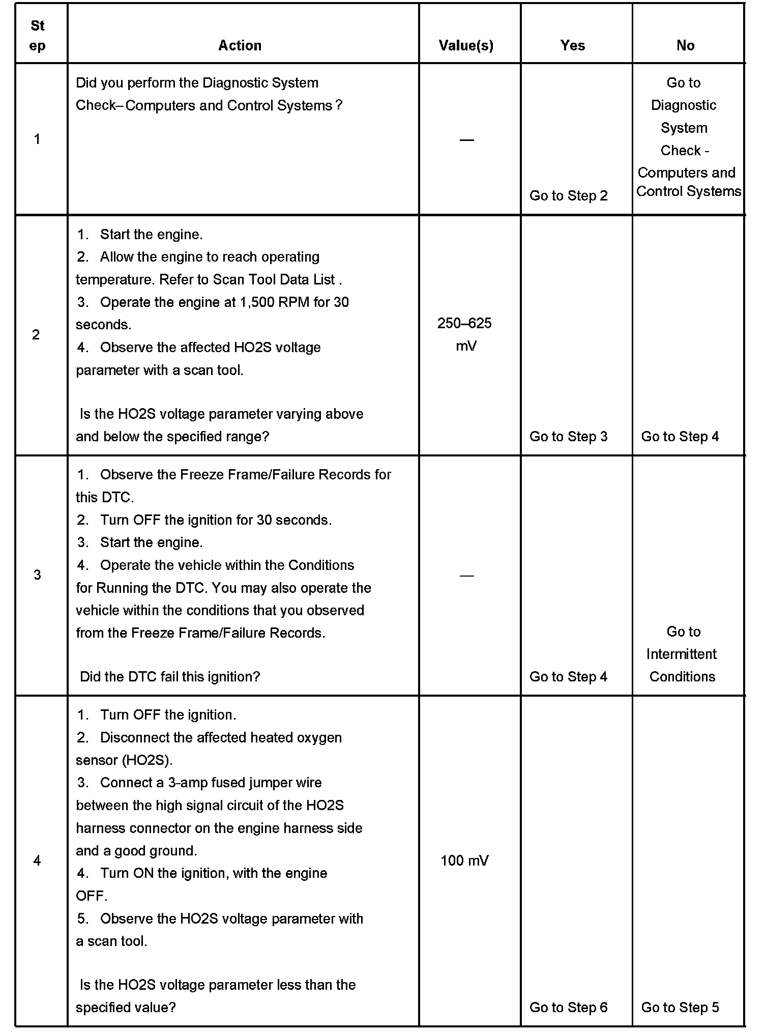 Heated oxygen sensors (HO2S) are used for fuel control and post catalyst monitoring. Each HO2S compares the oxygen content of the surrounding air with the oxygen content in the exhaust stream. The HO2S must reach operating temperature to provide an accurate voltage signal. Heating elements inside the HO2S minimize the time required for the sensors to reach operating temperature. The powertrain control module (PCM) supplies the HO2S with a reference, or bias, voltage of about 450 mV. When the engine is first started the PCM operates in open loop, ignoring the HO2S voltage signal. Once the HO2S reaches operating temperature and closed loop is achieved, the HO2S generates a voltage within a range of 0-1,000 mV that fluctuates above and below bias voltage. High HO2S voltage indicates a rich exhaust stream, low HO2S voltage indicates a lean exhaust stream. This diagnostic will only run once per ignition cycle. The PCM monitors the rich-to-lean and lean-to-rich transition time. A transition is defined as, the HO2S voltage changes from above 625 mV to below 250 mV or from below 250 mV to above 625 mV. If the PCM detects that the transition time is too long, DTC P0133 sets for HO2S bank 1 sensor 1, or DTC P0153 sets for HO2S bank 2 sensor 1.