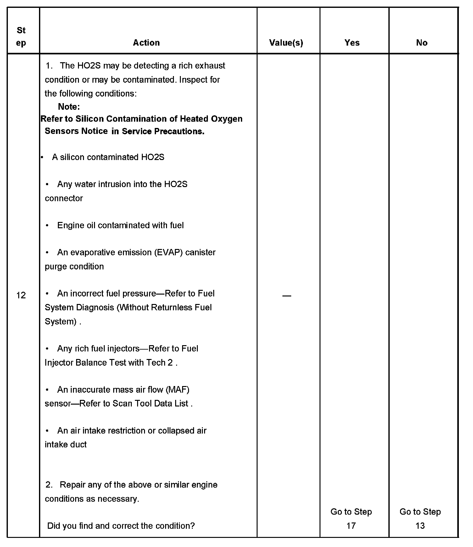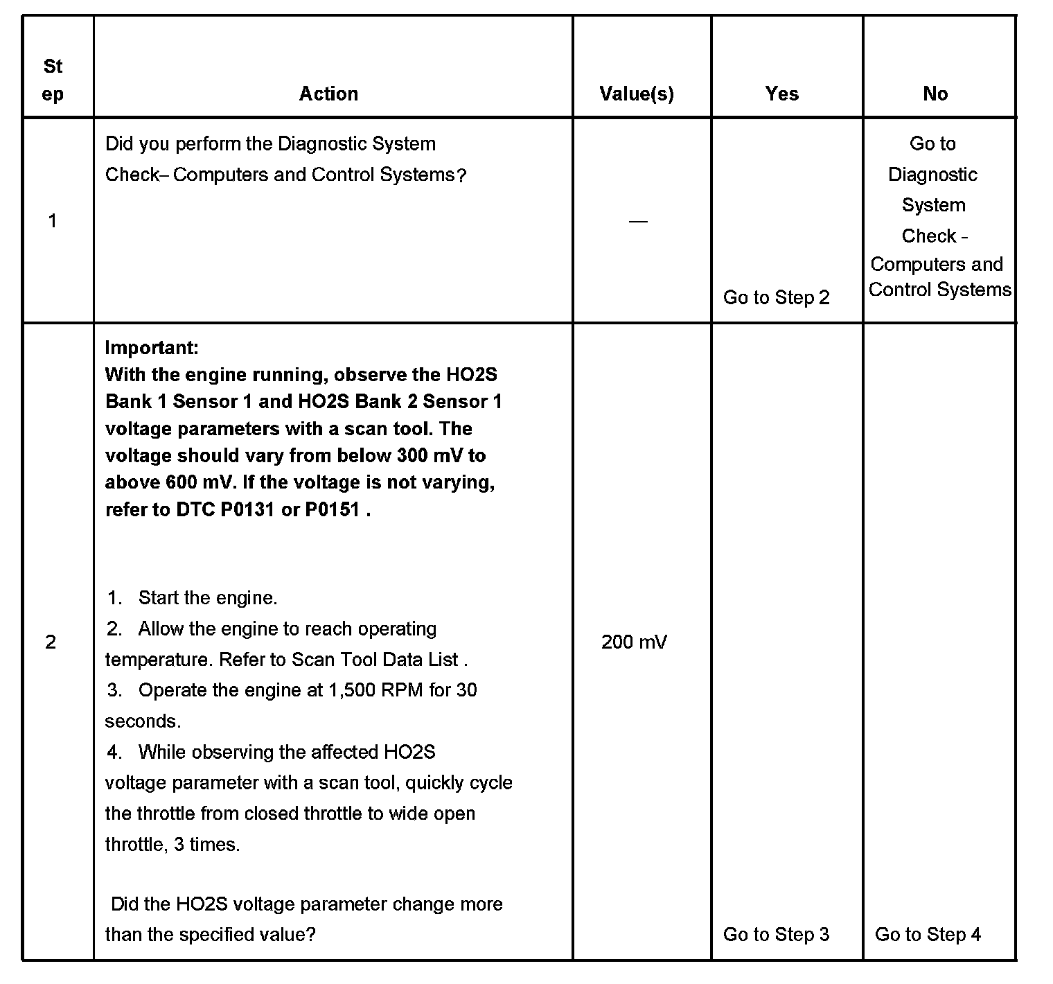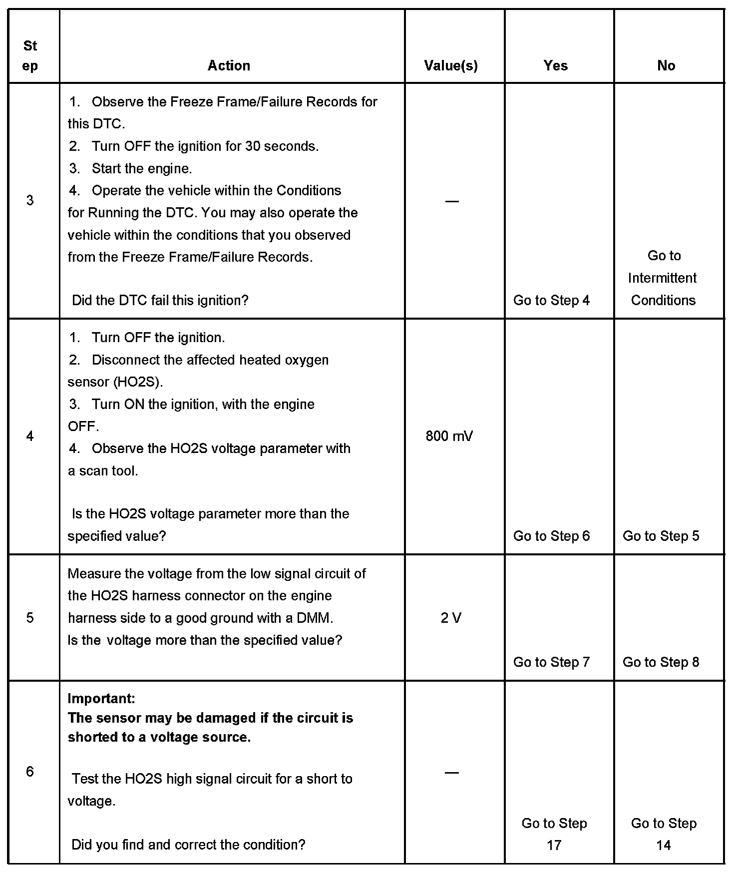 2. If the voltage does not change more that the specified value, the condition is present.