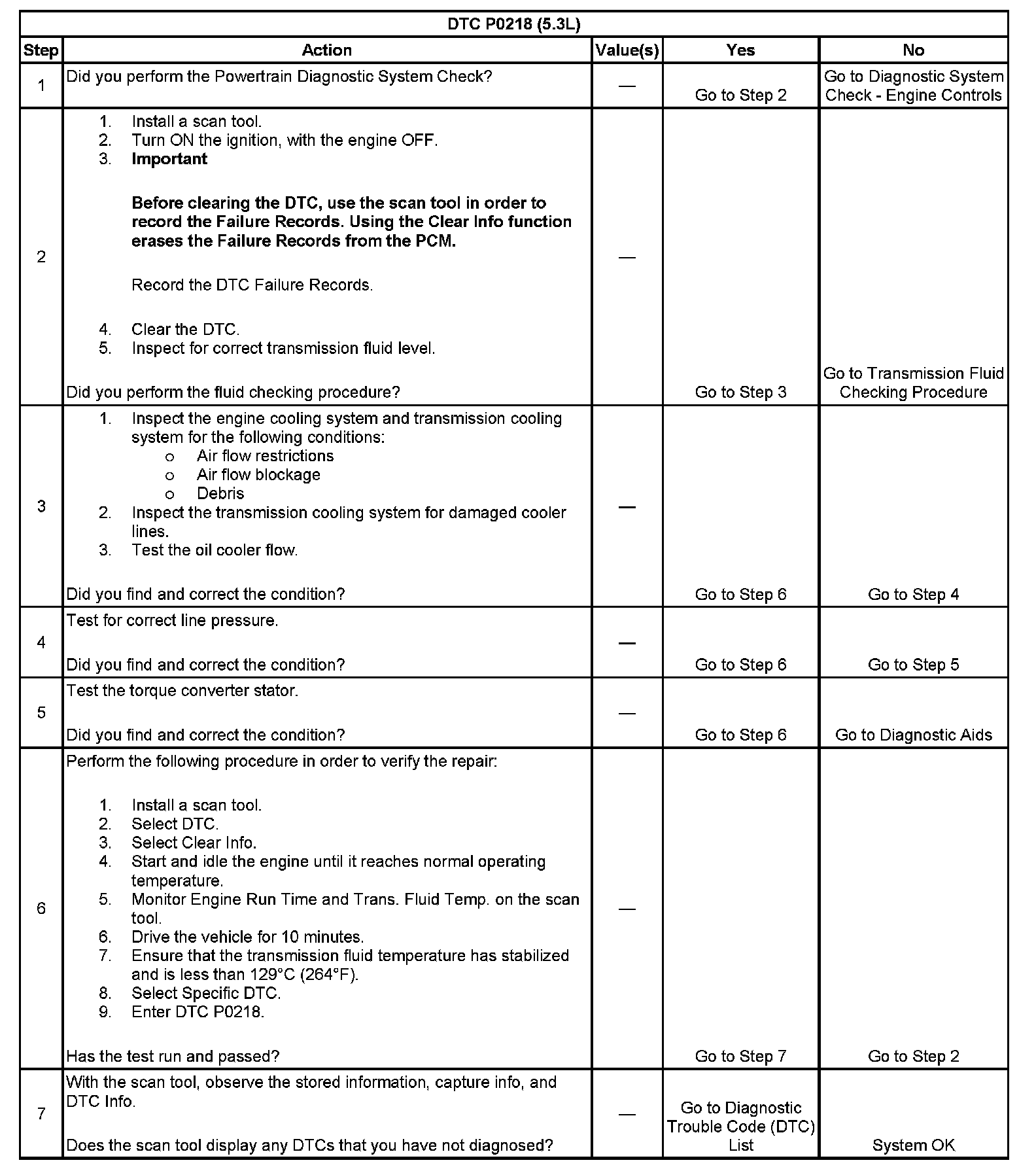 ^ The PCM stores DTC P0218 in PCM history.