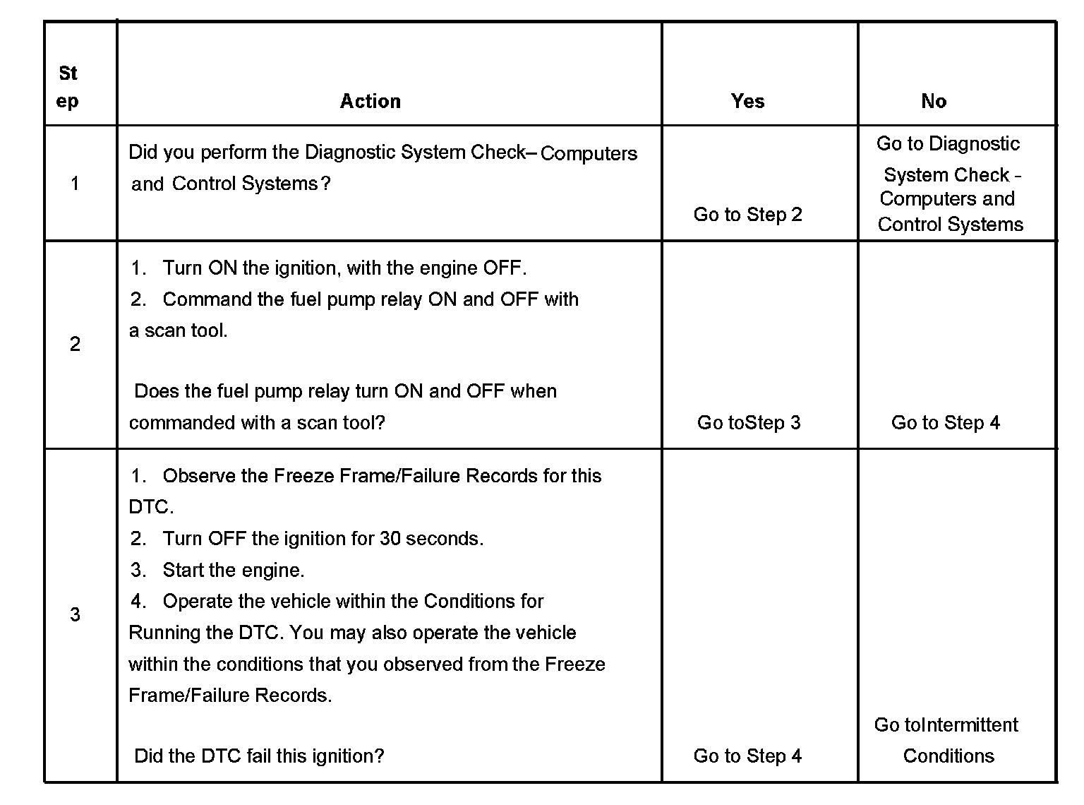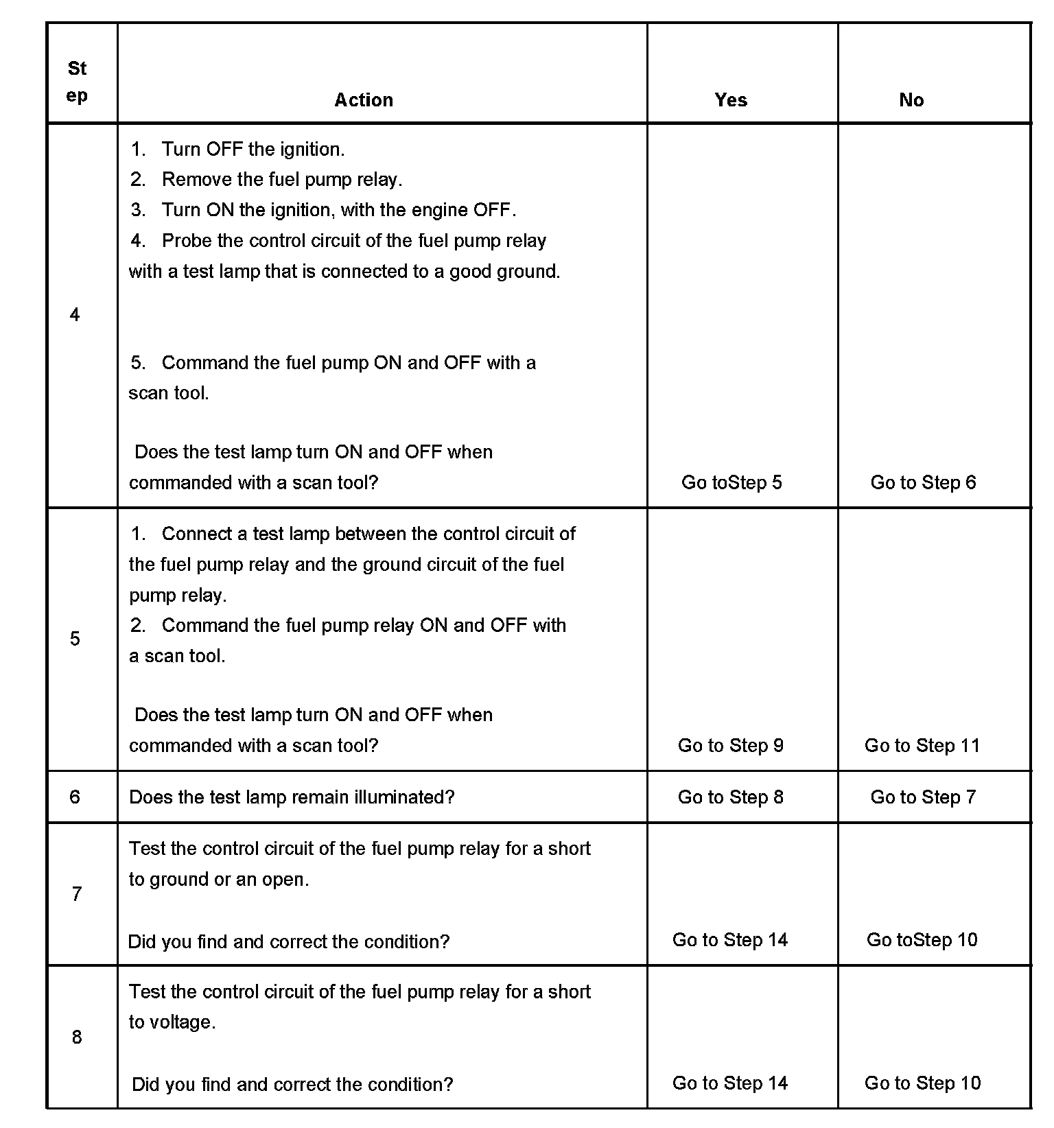 5. This step tests for an open in the ground circuit to the fuel pump relay.