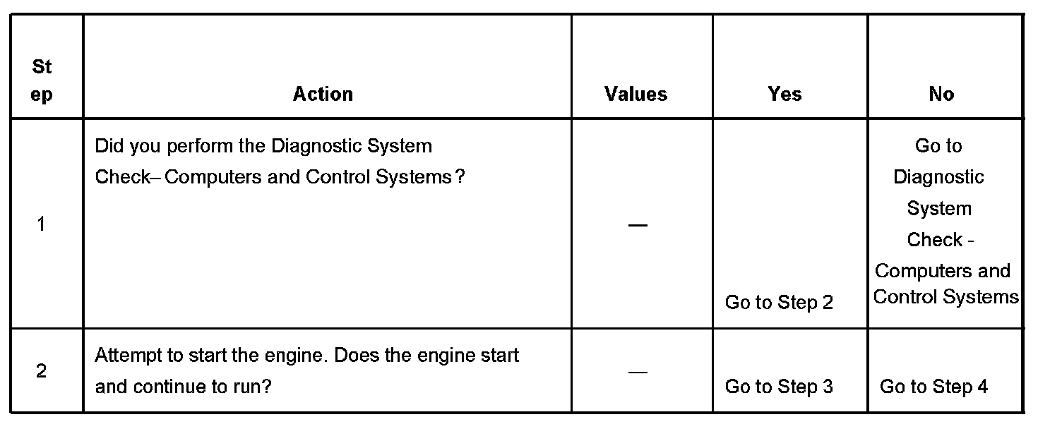 The numbers below refer to the step numbers on the diagnostic table.