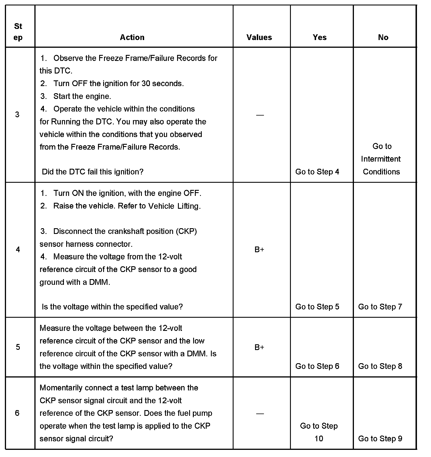 6. This step simulates a CKP sensor signal to the PCM. If the PCM receives the signal, the fuel pump will operate for about two seconds.