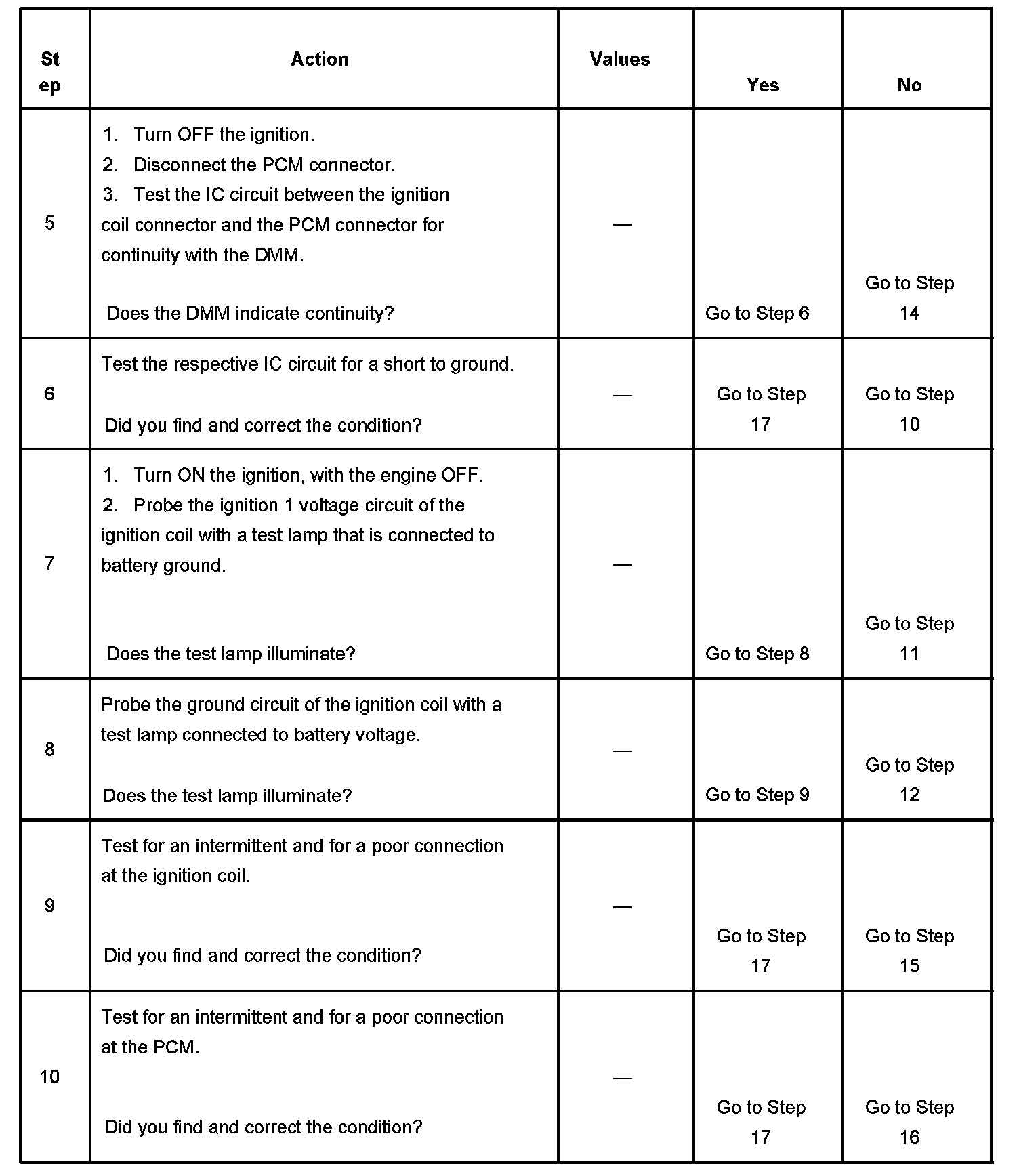 The ignition system on this engine uses an individual ignition coil for each cylinder. The powertrain control module (PCM) controls the ignition system operation. The PCM controls each coil using one of eight ignition control (IC) circuits. The PCM commands the IC circuit low when a spark event is requested. This causes the IC module to energize the ignition coil to create a spark at the spark plug. Each ignition coil has the following circuits: