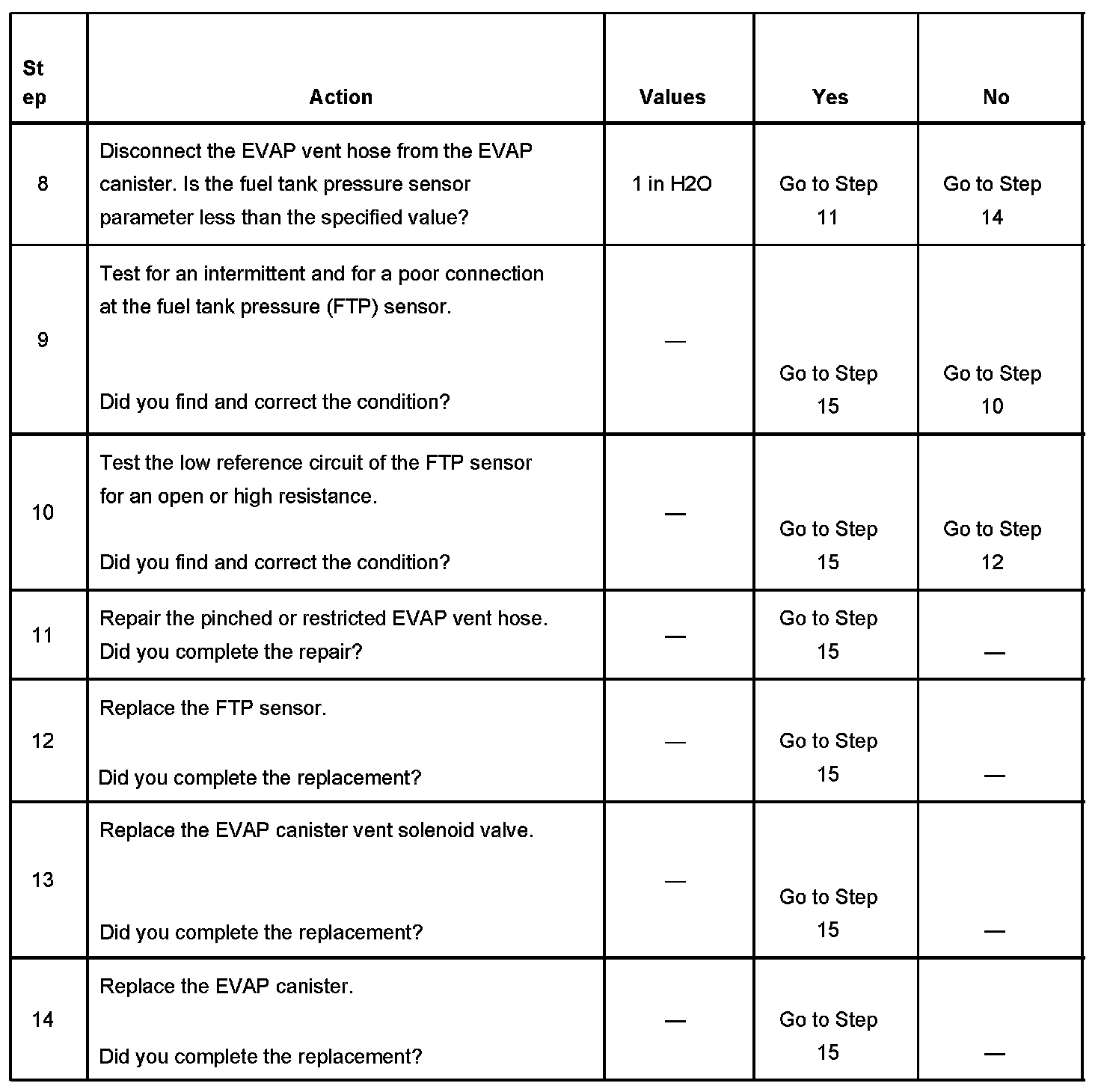 - The Fuel Tank Pressure sensor is less than -10 inches H2O.