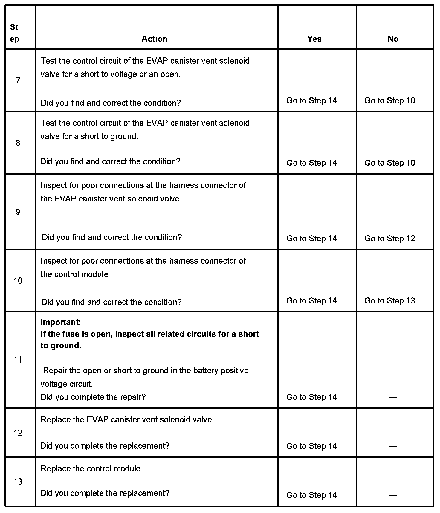 6. This step tests if the EVAP vent solenoid control circuit is grounded.