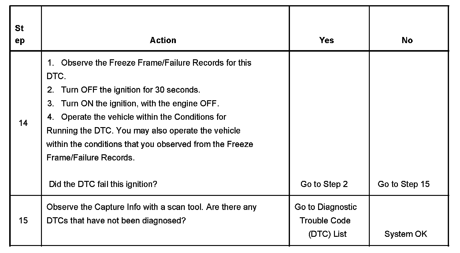 - A current DTC, Last Test Failed, clears when the diagnostic runs and passes.