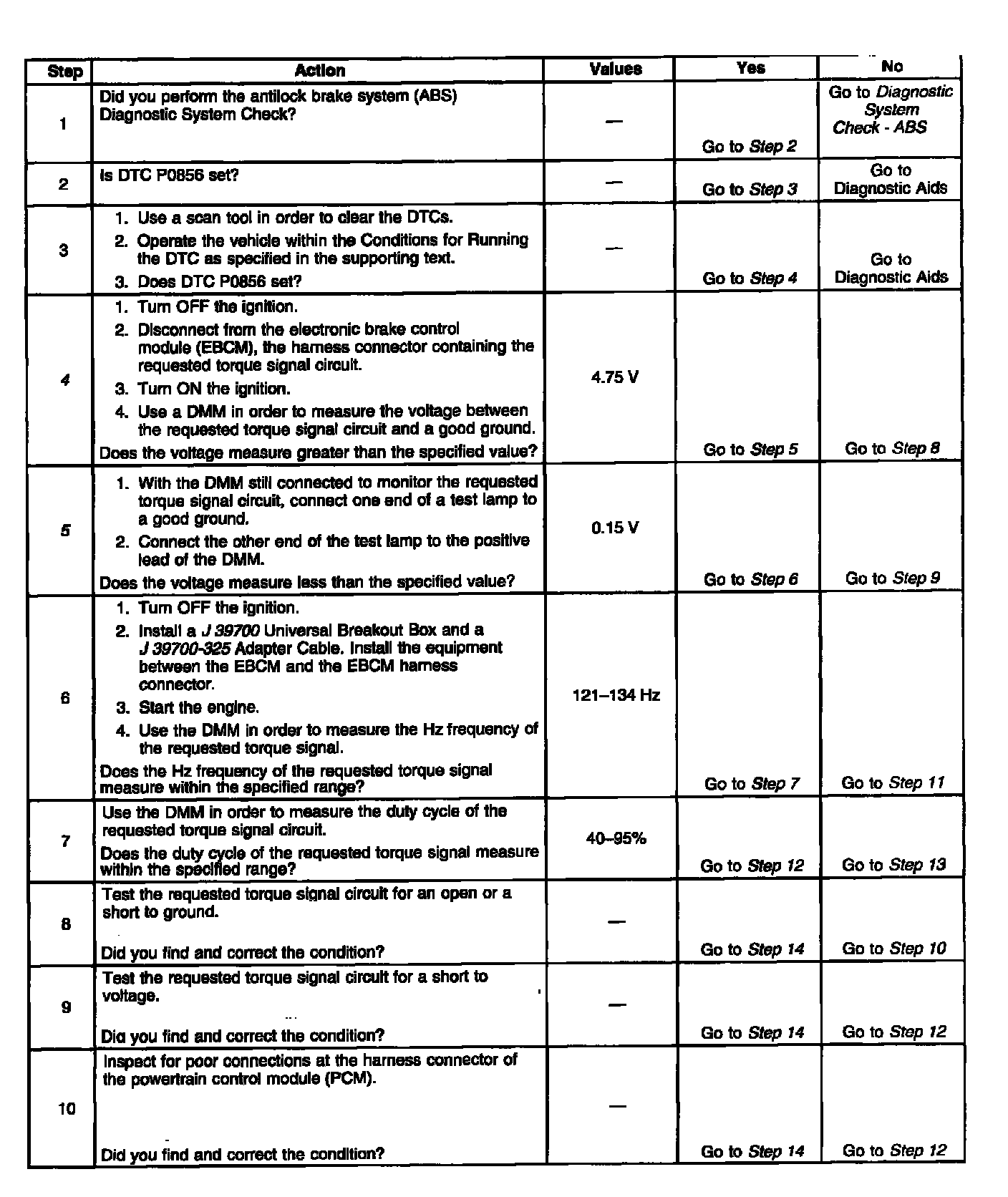 A requested torque signal malfunction is only one possible cause for the PCM to lose the ability to perform traction control. DTC C0298 may set due to engine overheating, throttle actuator control failure, loss of ignition timing control by the PCM, etc. If DTC P0856 has not set, refer to Diagnostic System Check - Engine Controls.