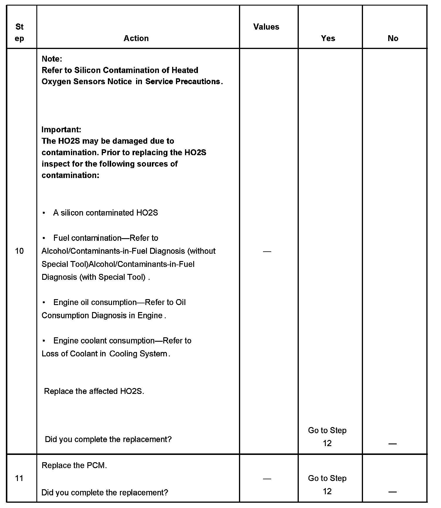 The number below refers to the step number on the diagnostic table.