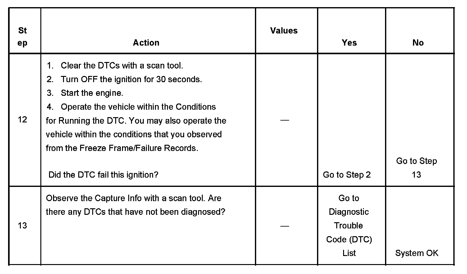 - A current DTC, Last Test Failed, clears when the diagnostic runs and passes.