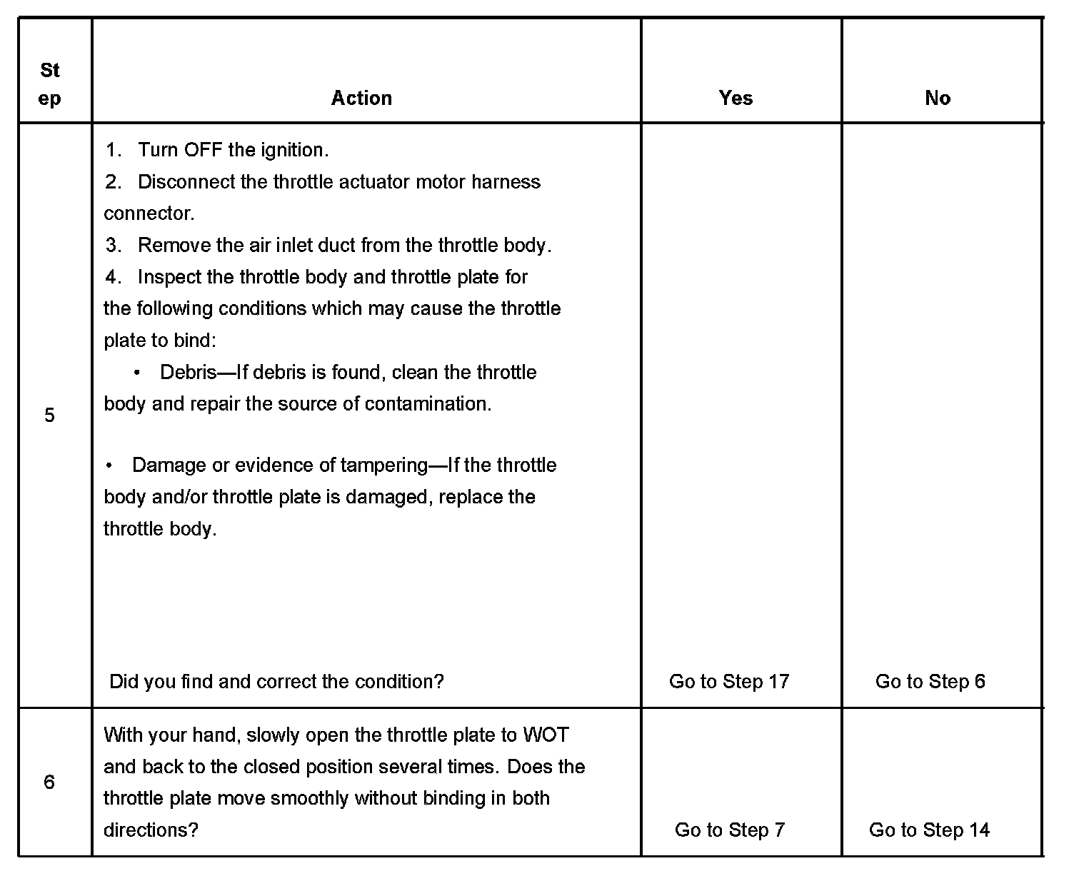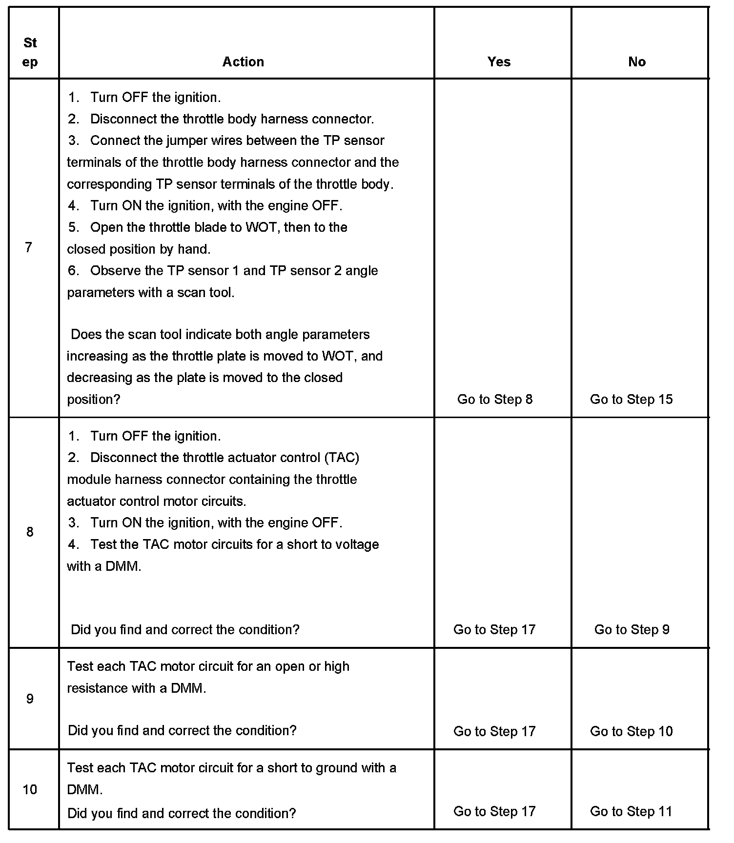 7. If the TP indicated angle does not follow the movement of the throttle blade and no TP sensor DTCs are set, there is a mechanical condition with the throttle shaft or the TP sensor.