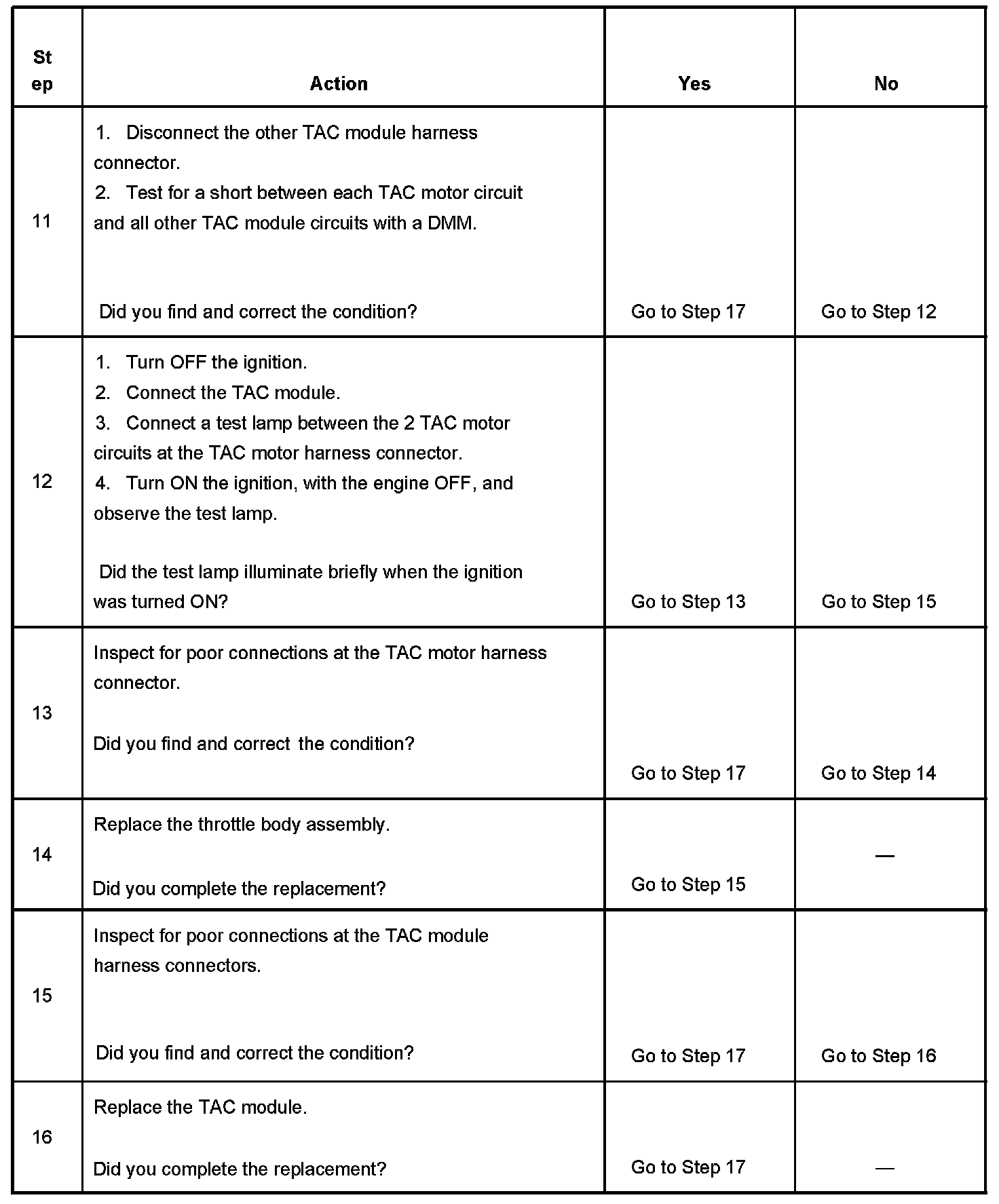 - The PCM and the TAC cannot determine the throttle position.