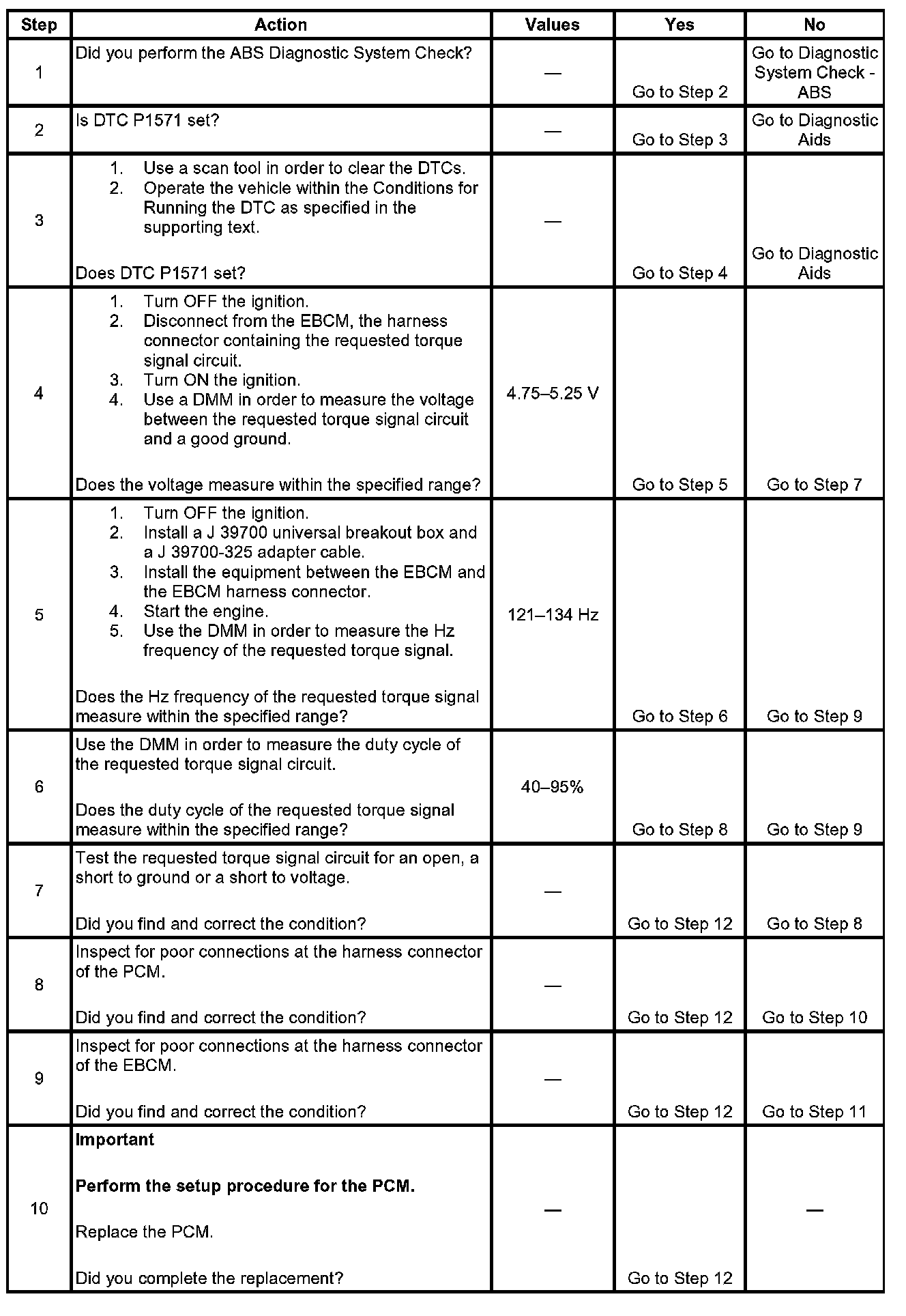 7. The EBCM may be damaged if the requested torque signal circuit is shorted to voltage.