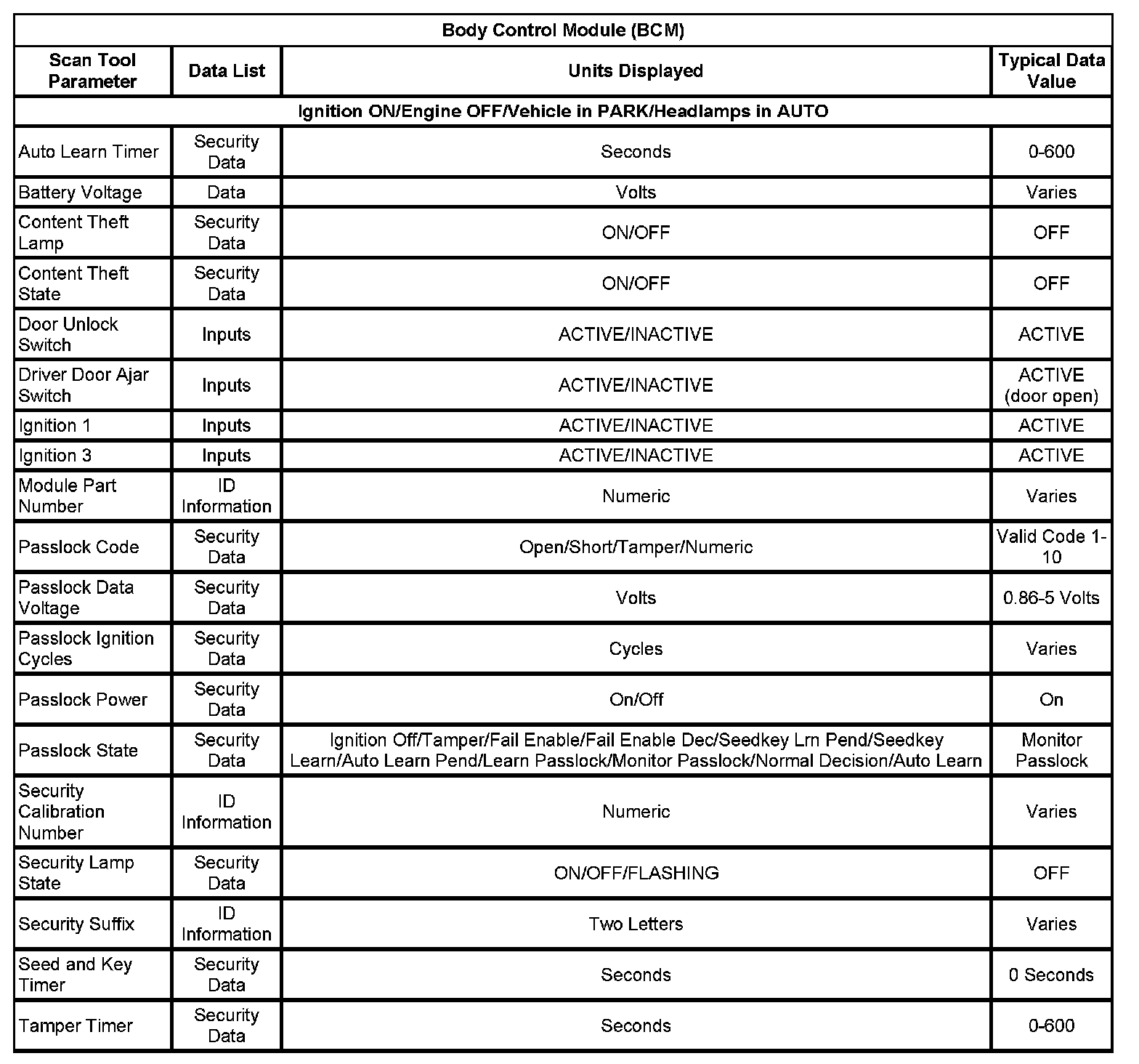 Body Control Module (BCM):