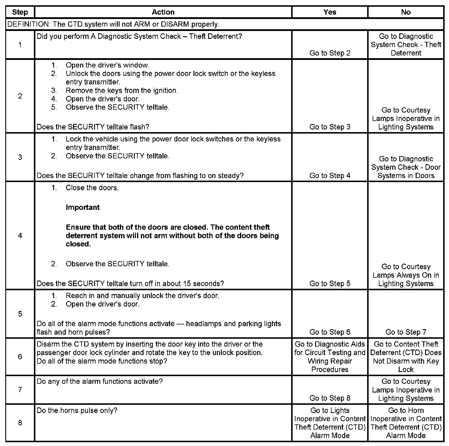 Alarm Mode Inoperative - Content Theft Deterrent (CTD)