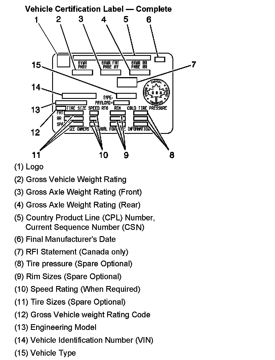 Vehicle Certification Label - Complete: