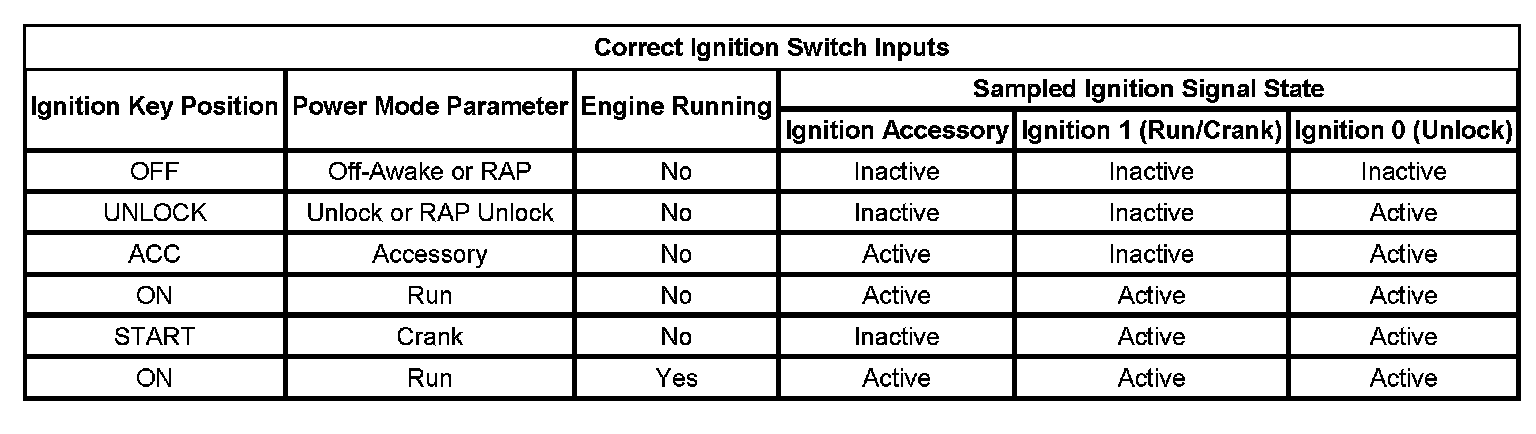 On vehicles that have several control modules connected by serial data circuits, one module is the power mode master (PMM). On this vehicle the PMM is the BCM. The BCM uses 3 signals from the ignition switch. These are the Ignition 0 (Unlock), Ignition 1 (Run/Crank), and Accessory.