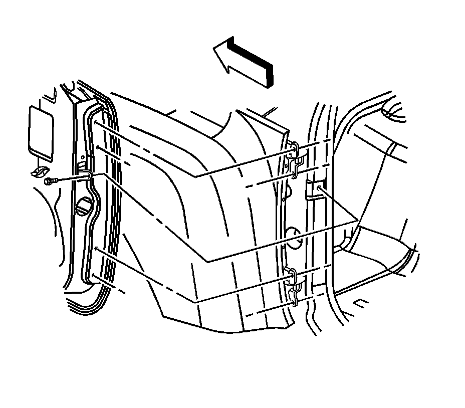 6. Install the side front door trim panel. Refer to Trim Panel Replacement - Door (Service and Repair) .