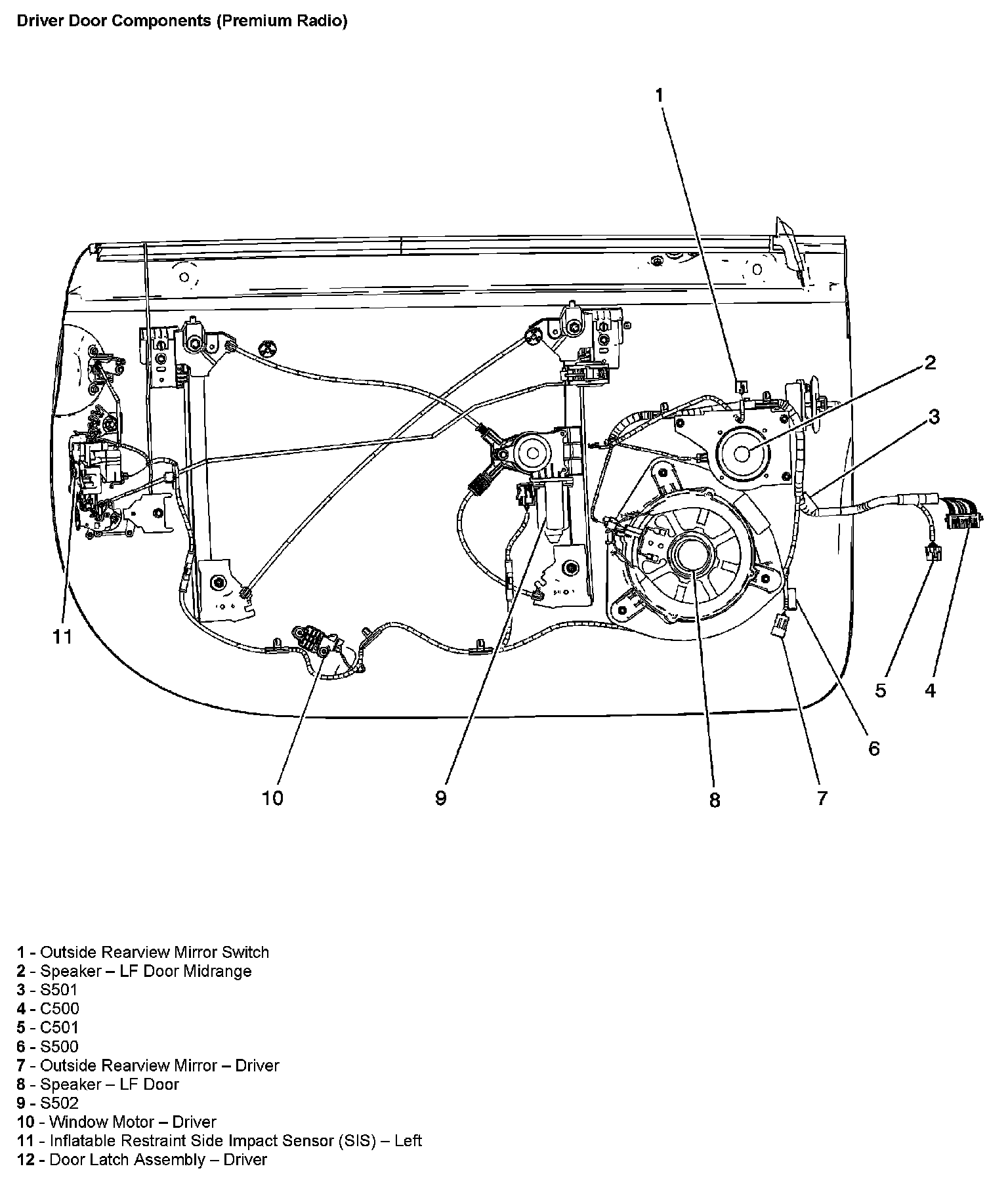 Driver Door Components (Premium Radio)