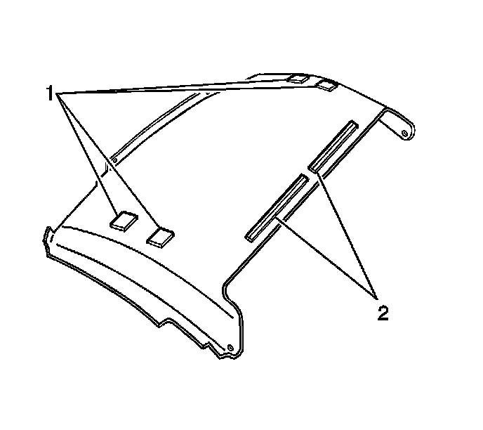 5. Push upward on the headliner to attach the dual lock fasteners (2).