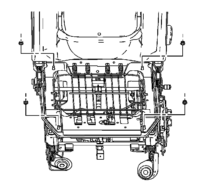 2. Tighten the seat cushion frame mounting nuts that secure the seat cushion frame to the power seat adjuster frame.