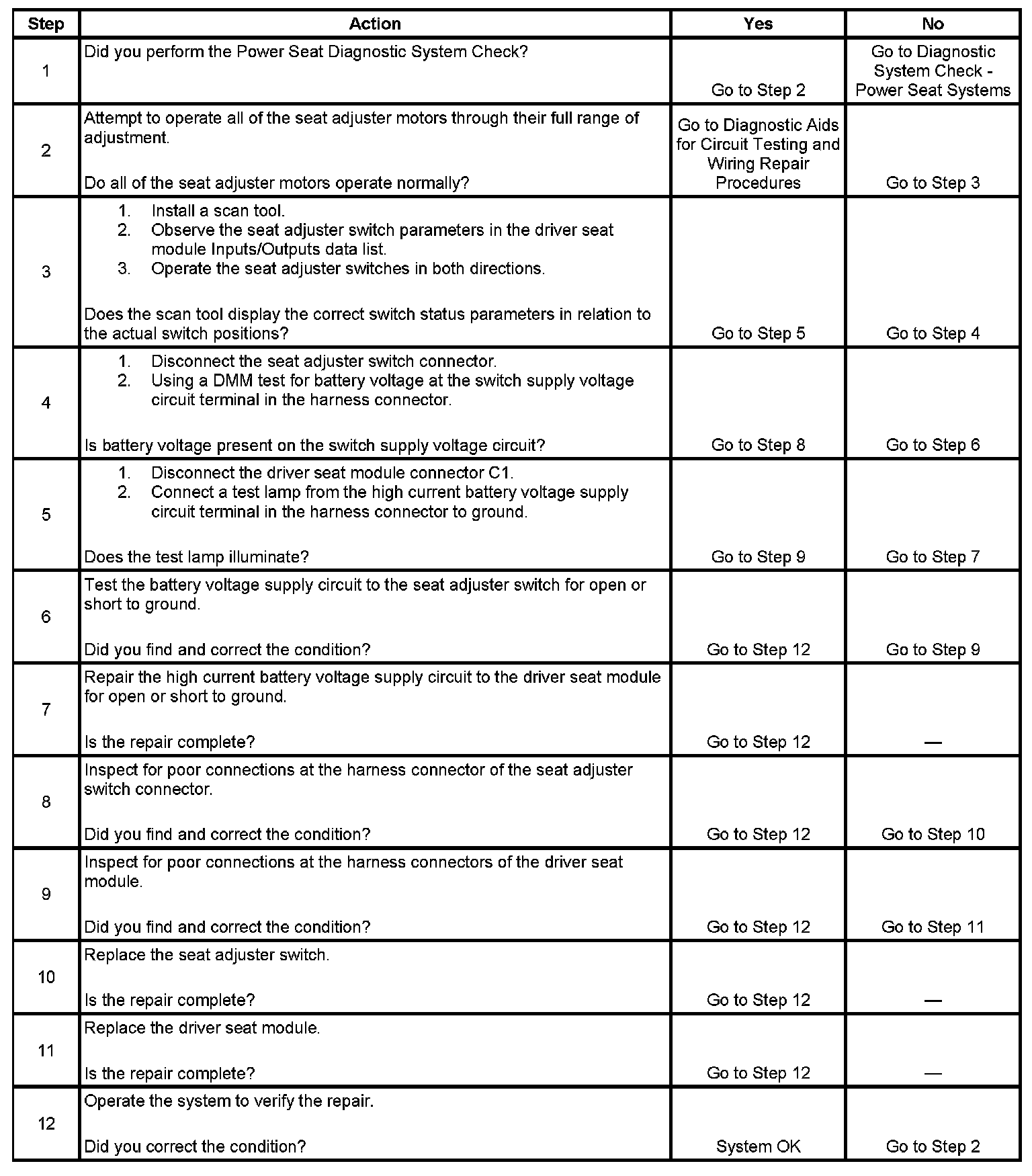 Power Seat Inoperative (with Memory)