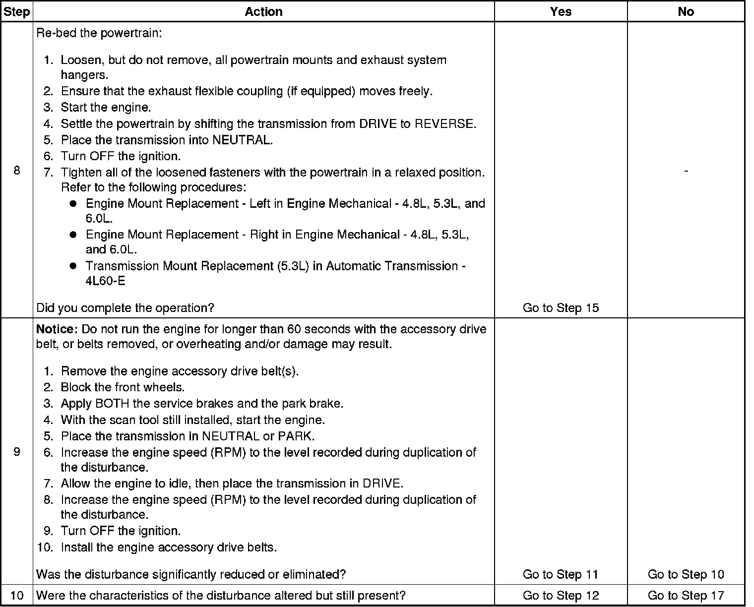 When loosening powertrain mounts in order to re-bed the powertrain observe the following: