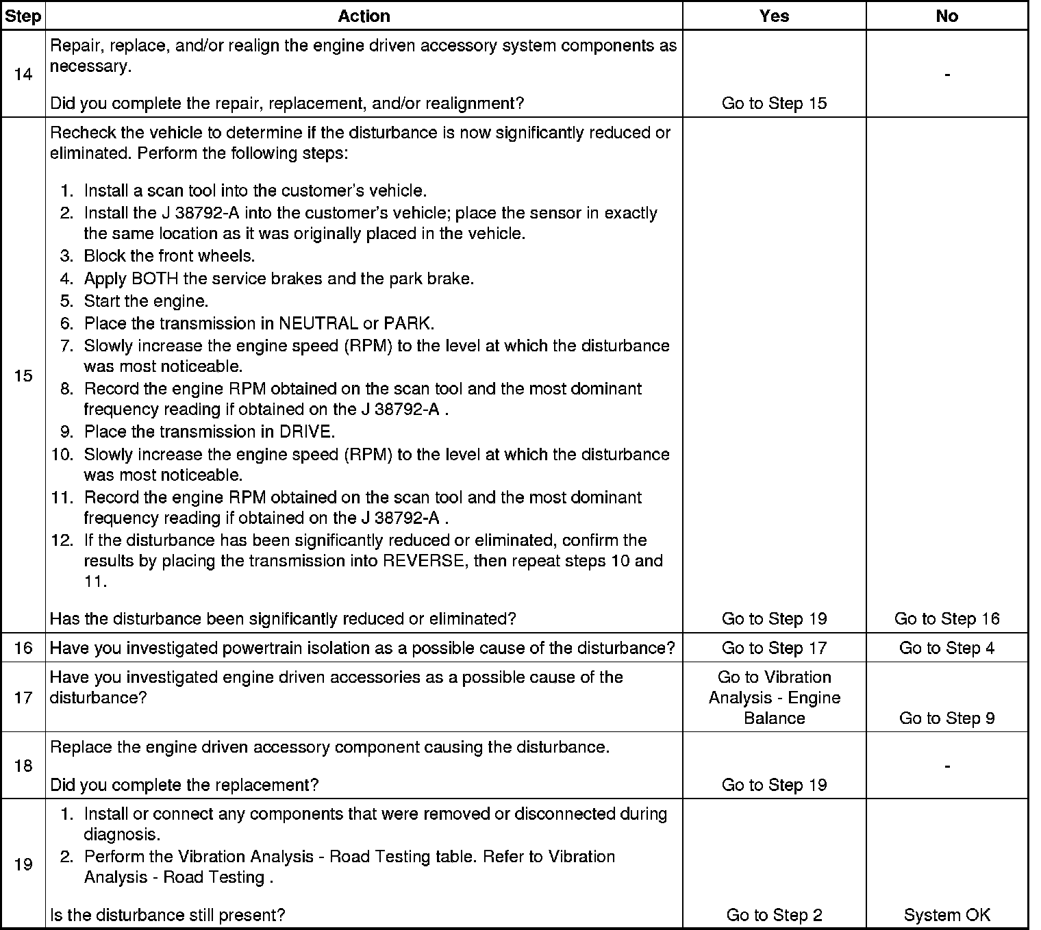 If a disturbance is still present, but the characteristics have NOT been altered, it is NOT likely that these component systems are acting as a transfer path for engine firing frequency or a first order engine disturbance.