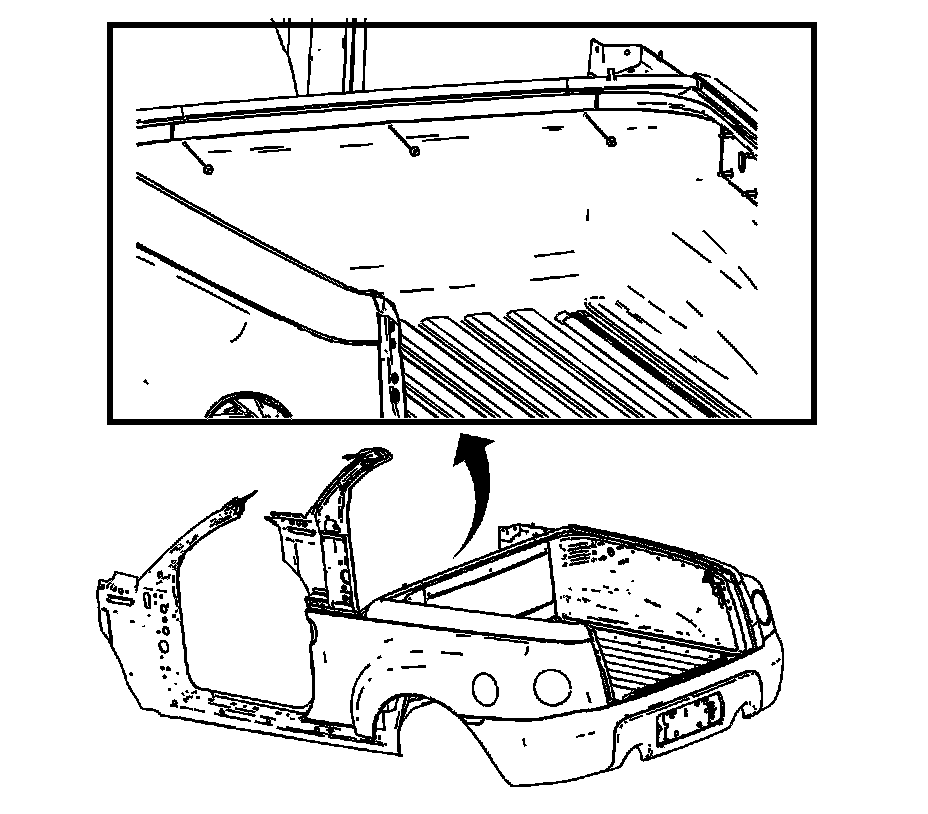 4. Remove the rear compartment upper rails. Refer to Rear Compartment Upper Rail Replacement () .