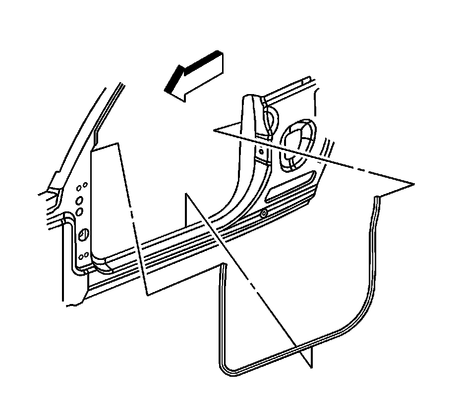 1. Remove the door sill plate. Refer to Door Sill Plate Replacement (Door Sill Plate Replacement) in Interior Trim.