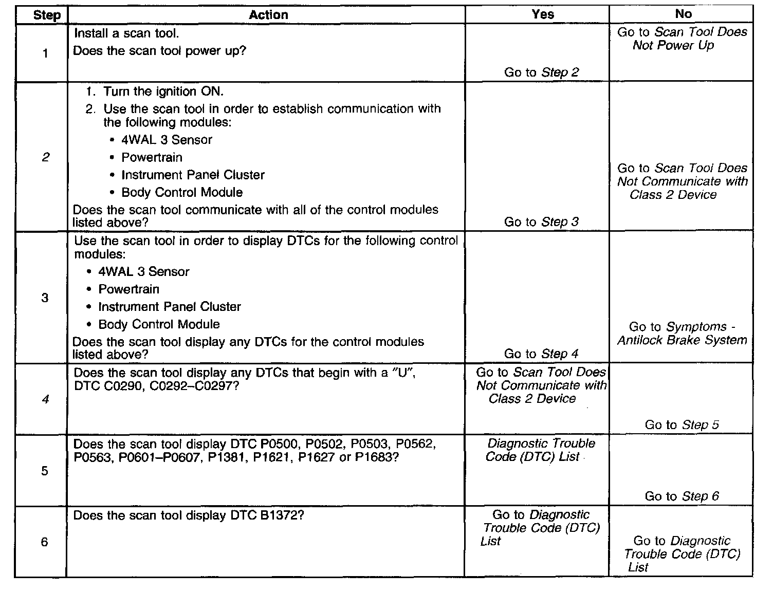 2. Lack of communication may be due to partial or total malfunction of the class 2 serial data circuit. The specified procedure will determine the particular condition.
